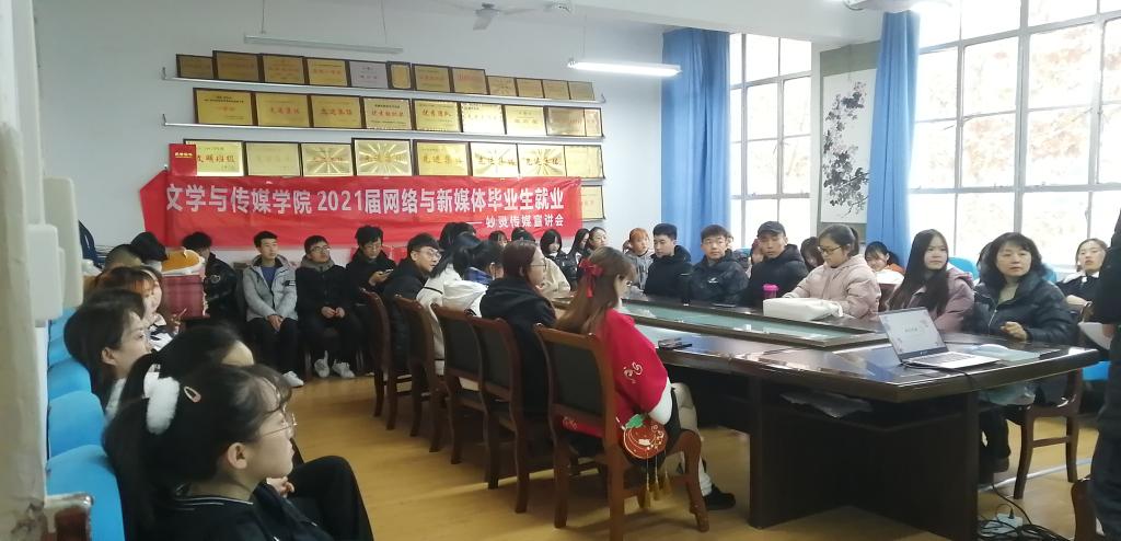 为了更好地拓宽毕业生就业渠道,2020年12月22日下午, 欧冠联赛官网邀请陕西妙灵文化传媒有限公司在2307会议室举办了招聘宣讲会。会议由辅导员邹棠华主持,院党总支副书记杨海蓉及网络与新媒体、秘书学两个专业50余名学生参加了本次招聘宣讲会。