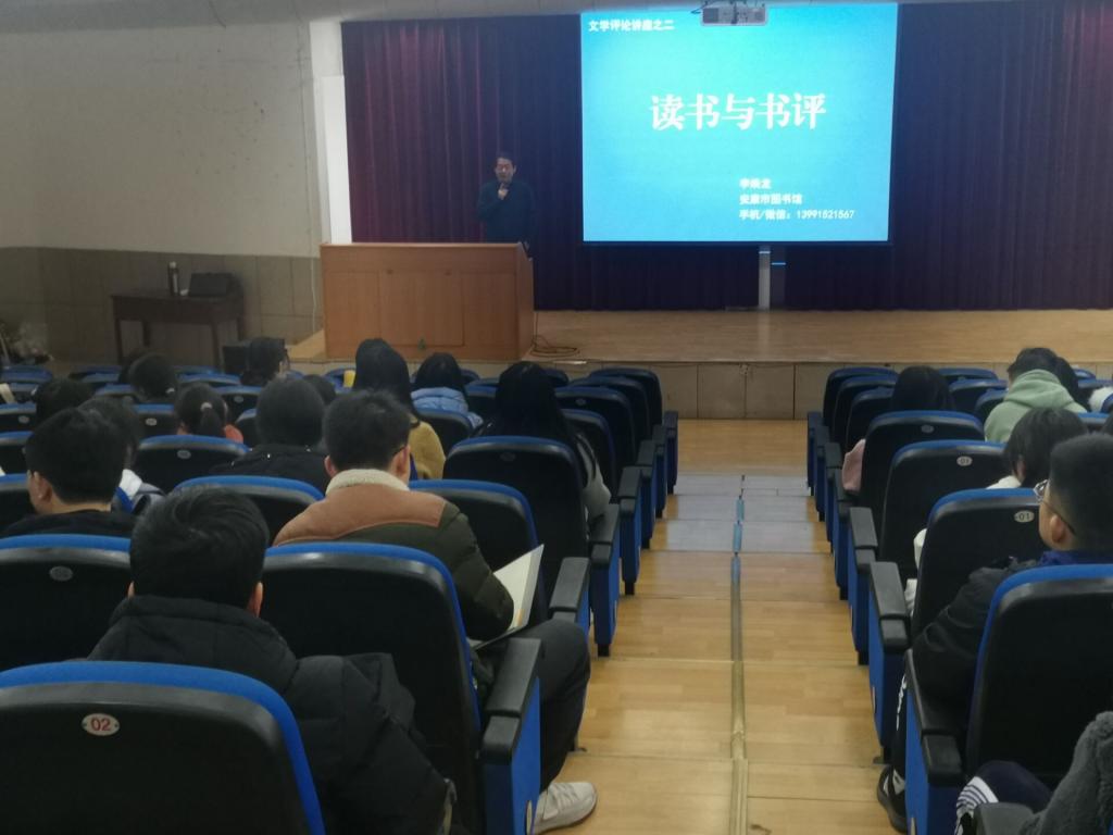1月4日晚上,安康市图书馆馆长李焕龙应欧冠联赛官网邀请,在江南1号楼报告厅,为汉语言文学专业2020级四个班的学生讲授“文学评论的写作”一课,基础写作课教师韩文霞全程参与。