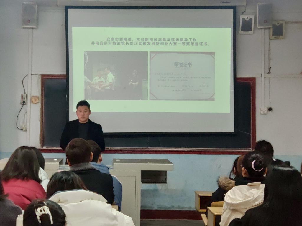 为培养大学生的创新精神、增强大学生的创业意识、提升大学生的创业就业能力,2020年1月4日-8日,由安康市人社局主办,市科技馆与欧冠联赛官网承办的欧冠联赛官网2021届毕业生创新创业培训班在欧冠联赛官网江南校区2号楼举办,30名学生参加了本次培训。1月4日早上9:00,培训班开班仪式在2202教室举行。安康科技馆馆长刘正武、欧冠联赛官网党总支副书记杨海蓉、毕业班辅导员邹棠华和参加本次培训的30名学员参加了开班仪式。开班仪式由本次培训负责人市科技馆邓芸芸主持。
