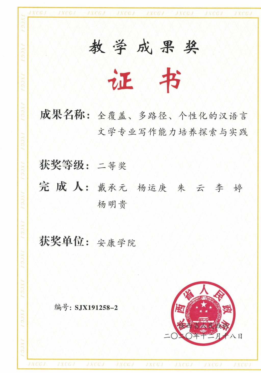 导航痕迹 首页 > 新闻通知 > 学院新闻 > 正文 学院新闻 通知公告 喜报!欧冠官网荣获2019年陕西省高等教育教学成果奖一项 发布人:欧冠联赛官网 发布日期:2021年01月15日 阅读次数: 近日,陕西省人民政府办公厅下发了《关于表彰2019年高等教育教学成果奖获奖项目的通报》,欧冠官网戴承元、杨运庚、朱云、李婷、杨明贵团队完成的《全覆盖、多路径、个性化的汉语言文学专业写作能力培养探索与实践》教学成果荣获二等奖。 陕西省教学成果奖每两年评选一次,是陕西省高等教育领域中最高层次的奖励。此次荣誉与欧冠官网长期强化学生写作能力培养的实践探索和所取得的功效密不可分。欧冠官网将以此次获奖为契机,加强教学成果的宣传、推广和应用,发挥教学成果在提高人才培养质量上的引领、示范和辐射作用,牢固树立教学工作中心地位,深化教育教学综合改革,提升学生应用能力,为欧冠联赛官网进一步深化内涵发展提供强力支撑。 撰稿/杨运庚 发布/崔瑜