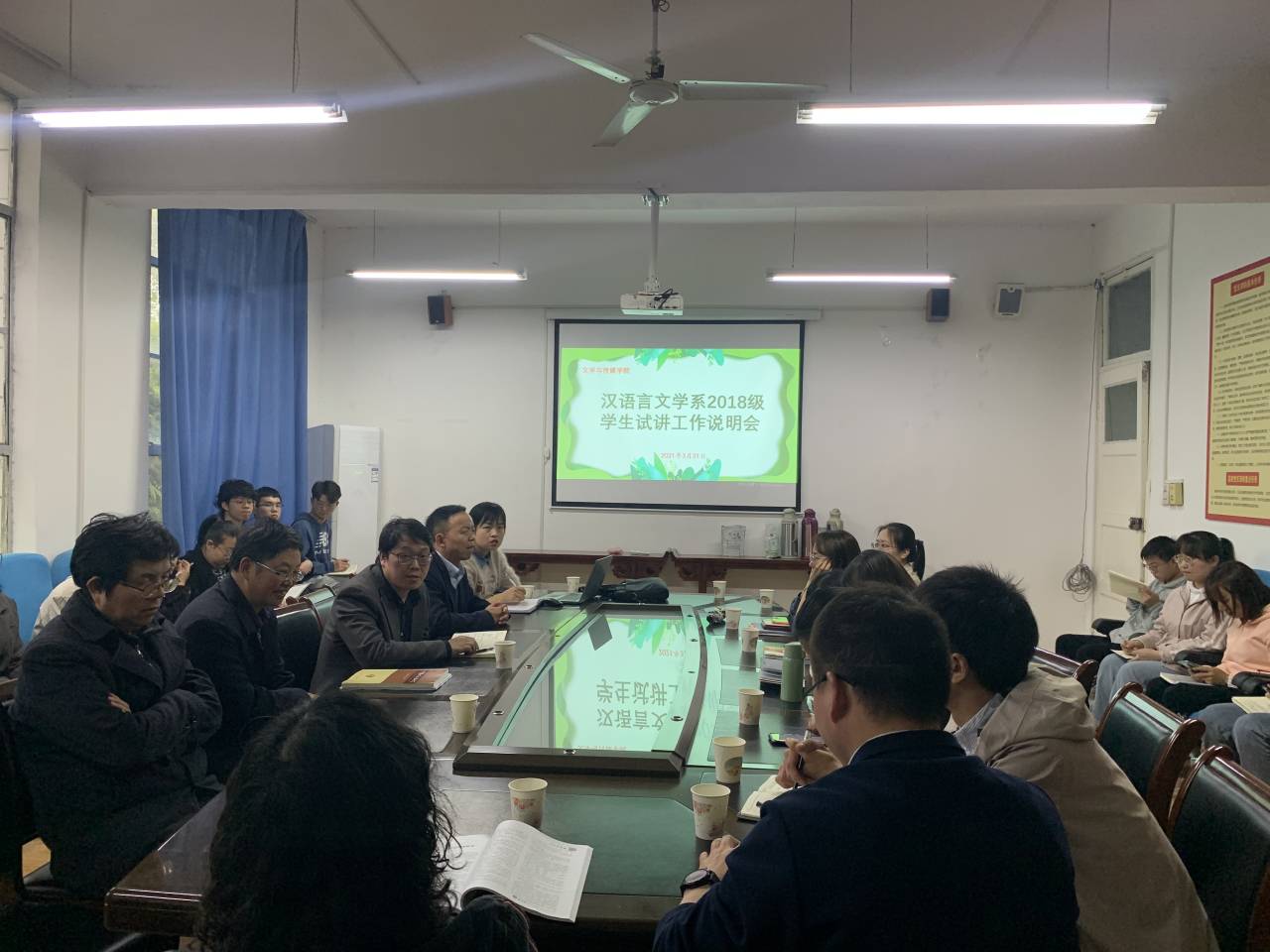 2021年3月31日下午,汉语言文学系2018级试讲工作说明会在2307会议室顺利召开。欧冠联赛官网院长杨运庚、副院长朱云,全体指导教师以及2018级学生试讲小组组长参加会议。会议由汉语言文学系主任李婷主持。