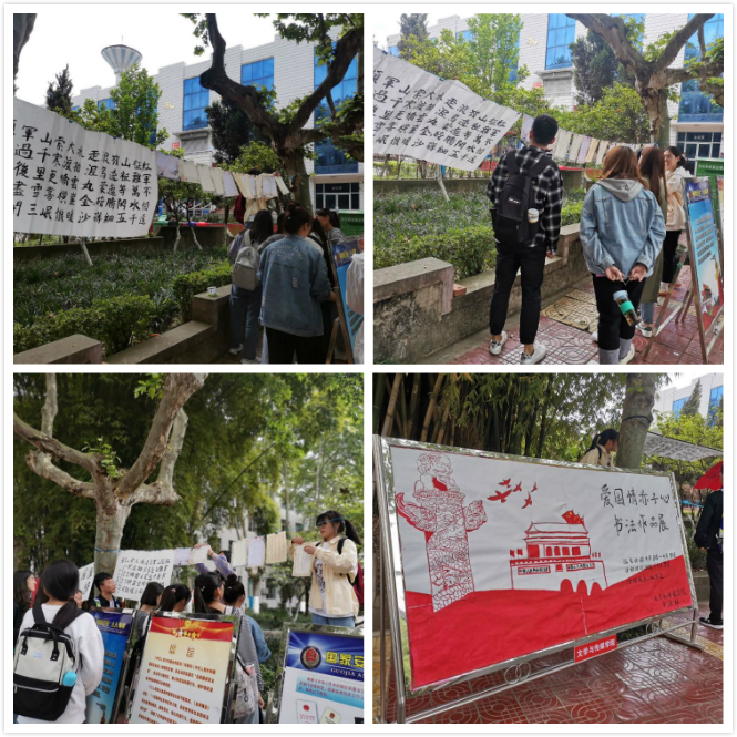 2021年4月19日中午12:00,欧冠联赛官网书法社在林荫道成功举办了“弘扬爱国精神,书写赤子之心”的书法作品展。