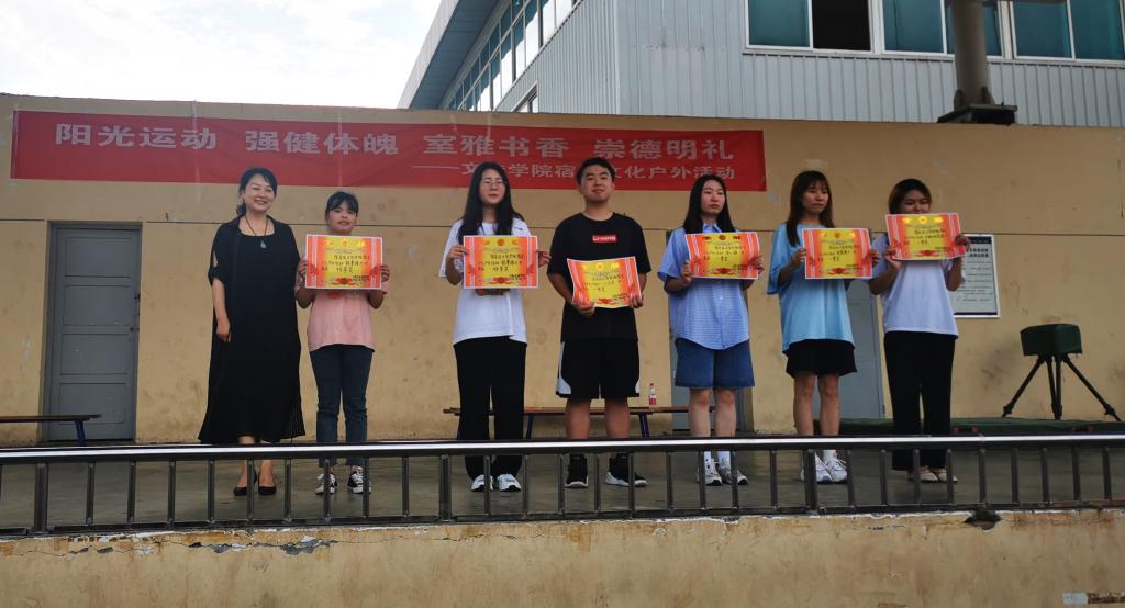 为丰富宿舍文化,有力推进欧冠联赛官网学生党支部“室雅书香”党建特色培育品牌建设,6月11日午16时,欧冠联赛官网成功举办了以“阳光运动 强健体魄 室雅书香 崇德明礼”为主题的宿舍文化户外活动。欧冠联赛官网党总支副书记杨海蓉、学工办副主任薛涛、团总支书记彭潇和2020级全体学生参与此次活动。