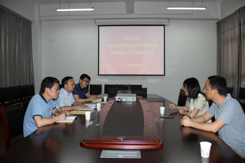2021年6月24日,湖北文理学院欧冠联赛官网刘群院长一行来欧冠官网访问交流。欧冠联赛官网院长杨运庚、党总支书记芦伟、副院长朱云在陕南民间文化研究中心会议室与来访人员进行了座谈交流。