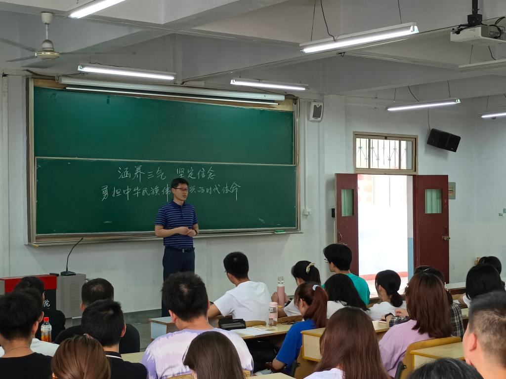 芦伟结合习近平总书记“七一”重要讲话精神,引导学生认识国情,认清形势,明确使命。他指出,习近平总书记对青年寄予希望:“新时代青年要以实现中华民族伟大复兴为己任,增强做中国人的志气、骨气、底气,不负时代,不负韶华,不负党和人民的殷切期望!”希望同学们从中国共产党成立以来100年的历史实践,从当代大学生亲身目睹的脱贫攻坚、抗击疫情、抵御洪灾、大国重器、强军卫国等现实,从建设富强民主文明和谐美丽的社会主义现代化强国的宏伟目标,深刻理解“马克思主义为什么行、中国特色社会主义为什么好、中国共产党为什么能”,进一步坚定理想信念,增强“四个自信”、涵养青年三气,书写家国情怀,赓续民族精神,勇担时代使命,贡献青年力量,做合格接班人。