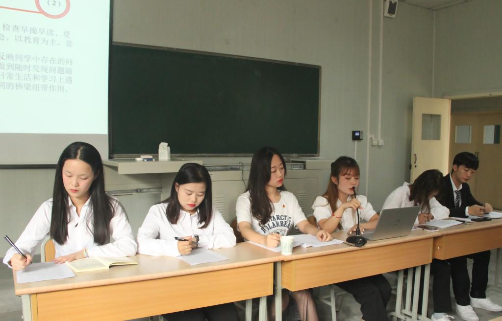 康怡帆、王珂欣、范璐分别介绍了学生分会下设机构。秘书部作为学生会的枢纽部门,要积极配合参与各部门的活动,了解各方面的工作信息;生活纪律部以同学们的宿舍为依托,主要以常规工作和部门活动为主,包括定期的宿舍检查,不定期的宿舍抽查等;文体部是积极、活泼、有效的开展各项学院文艺活动和体育活动的职能部门;学习部是一个服务于全院工作的集知识性、联络性、服务性于一体的部门,致力于为同学们提供一个展现自我风采,展示学习成果的舞台。