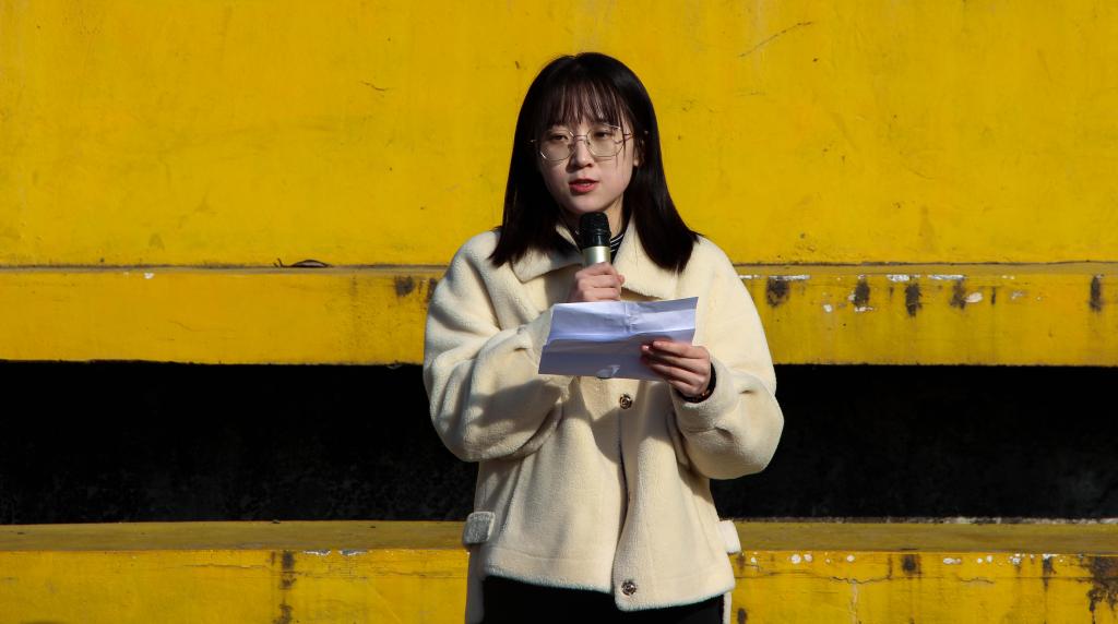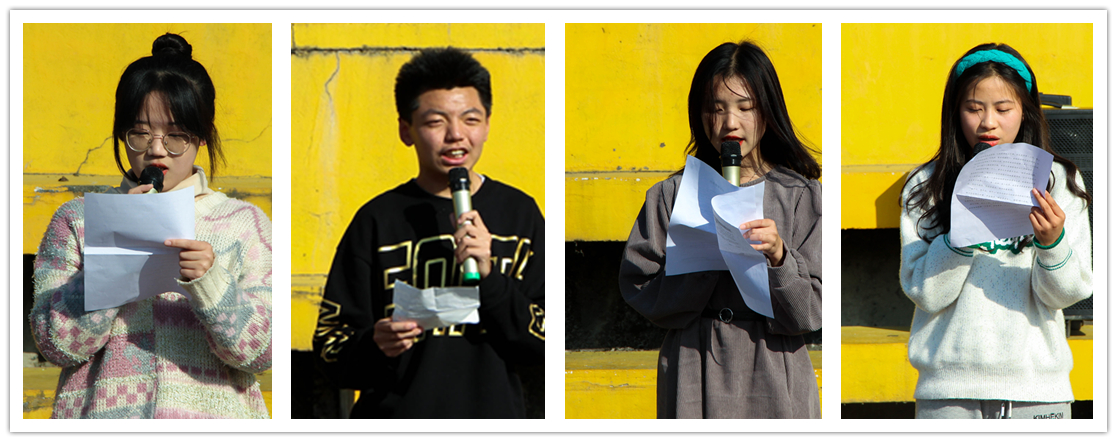 秘书2019级陈兴艳、王姣两位同学先后发言。她们首先表达了对于国家、社会、学校的感激之情,自己能取得国家励志奖学金,这是国家对于大学生的关爱,只有更加勤奋学习、努力工作,才能回报党和政府的恩情,才能报答父母的养育之恩和老师的教导之情。同时她们向一年级的同学介绍了自己的学习经验,号召大家学会感恩、勇担责任、提升修养、努力成长为一名优秀大学生。