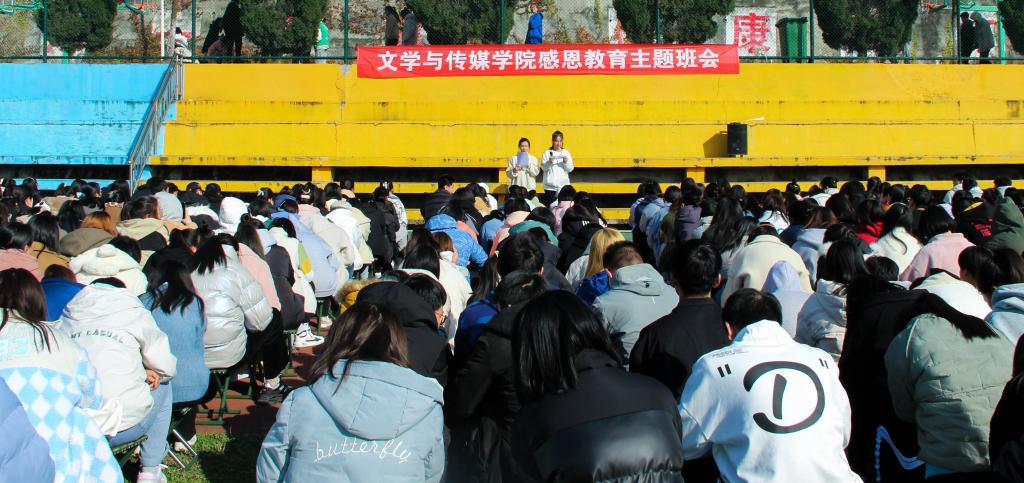 2021年11月24日下午,欧冠联赛官网在江南校区操场举办了“感恩于心,回报于行”感恩教育主题班会,欧冠联赛官网2021级和秘书学2019级330余名同学参加了活动。活动由辅导员邹棠华主持,院党总支副书记杨海蓉出席活动并讲话。