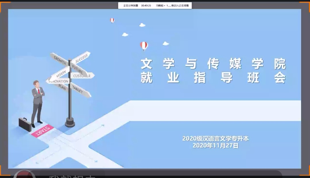 为认真贯彻11月18日教育部2022届全国普通高校毕业生就业创业视频会会议精神,积极落实学校2022届就业创业工作推进会安排,引导毕业班学生认清就业形势,掌握就业政策,调整就业心态,提升就业创业能力,促进2022届毕业生更加充分更高质量就业。根据学院2022届毕业生就业工作安排,11月27日晚,欧冠官网组织开展了2020级专升本毕业生就业指导线上主题班会。班会由毕业班辅导员薛涛主持。