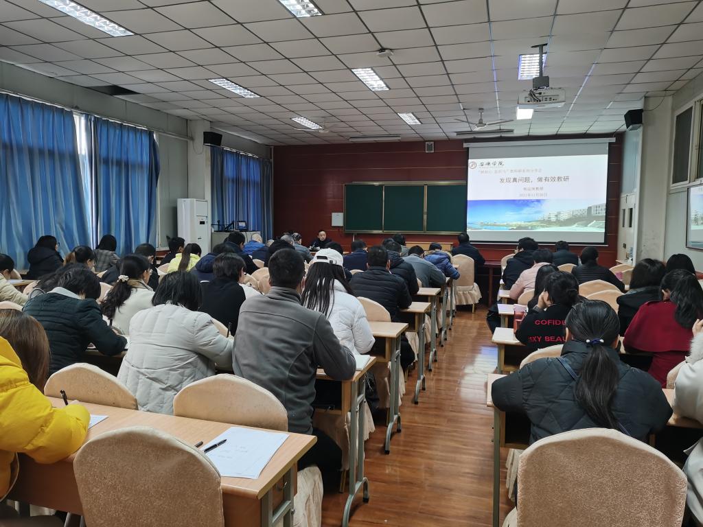 11月26日下午,我校“树初心显担当”教科研系列分享会第三场在江南校区1018会议室开讲,欧冠联赛官网院长杨运庚教授以“发现真问题,做有效教研”为题就教学改革与教学成果凝练做了专题报告会,相关课题负责人、部分教学院长及无课教师近80人参加。