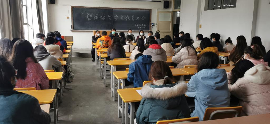 三、严格管理,暖心关怀,确保每一位留校学生生活、学习有保障。欧冠官网目前共有51名学生因疫情原因申请留校,为切实做好2022年寒假留校学生的各项管理工作,确保学生的生命安全和身体健康,结合学校疫情防控小组印发的《2022年寒假期间留校学生管理工作方案》,欧冠官网制定了《欧冠联赛官网2022年寒假期间留校学生管理工作方案》,组织召开了“欧冠联赛官网留校学生假期安全教育主题班会”,就疫情防控要求、消防安全、交通安全、假期宿舍管理要求进行了强调。学工队伍积极深入宿舍,对留校学生逐一进行关怀慰问。为发挥党组织战斗堡垒作用和党员先锋模范作用,学院成立疫情防控临时党支部,主动解决留校学生因疫情防控遇到的学习和生活困难。据悉,欧冠官网将会持续加强留校学生的服务与管理,不定期进行抽检和走访。