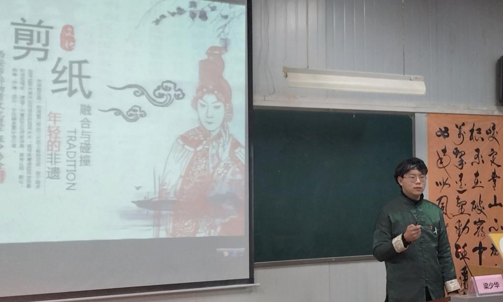 为深入推进物质文化遗产保护,传承中华民族生生不息的传统文化,让非遗进校园成了近些年较为普遍的做法。2022年2月28日,欧冠官网学生、西安市非物质文化遗产保护协会会梁少华受邀在外语学院6407教室展开《年轻的非遗》剪纸文化讲座。