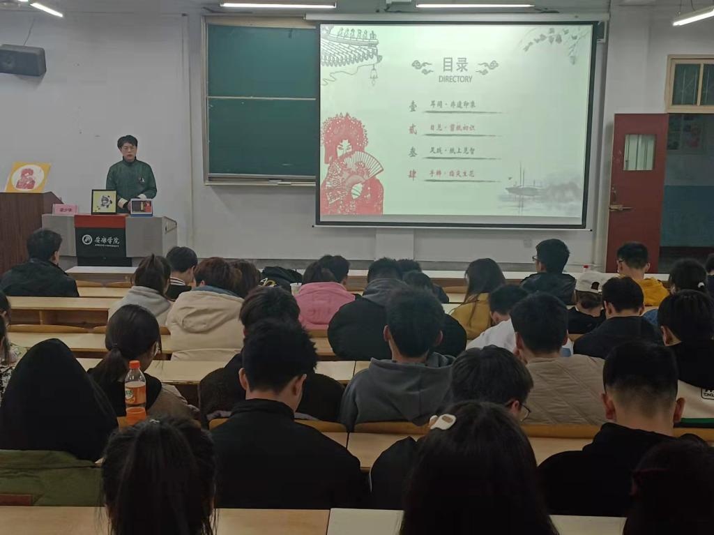 非物质文化遗产的传承与保护,是基于目前传统文化保护链条断开的前提下提出的,高校教育具有得天独厚的条件,可以依靠自身力量与高校学生,传承中华非物质文化遗产,并对其进行创新性保护,并不断发展。为深入探索非物质文化遗产传承的意义,以及传承与保护的途径,3月1日晚上7时,欧冠官网学生、西安市非物质文化遗产保护协会会员梁少华在1510教室为体育学院21级全体学生开展“年轻的非遗”剪纸文化分享讲座,讲座由体育学院康梦瑶老师主持。
