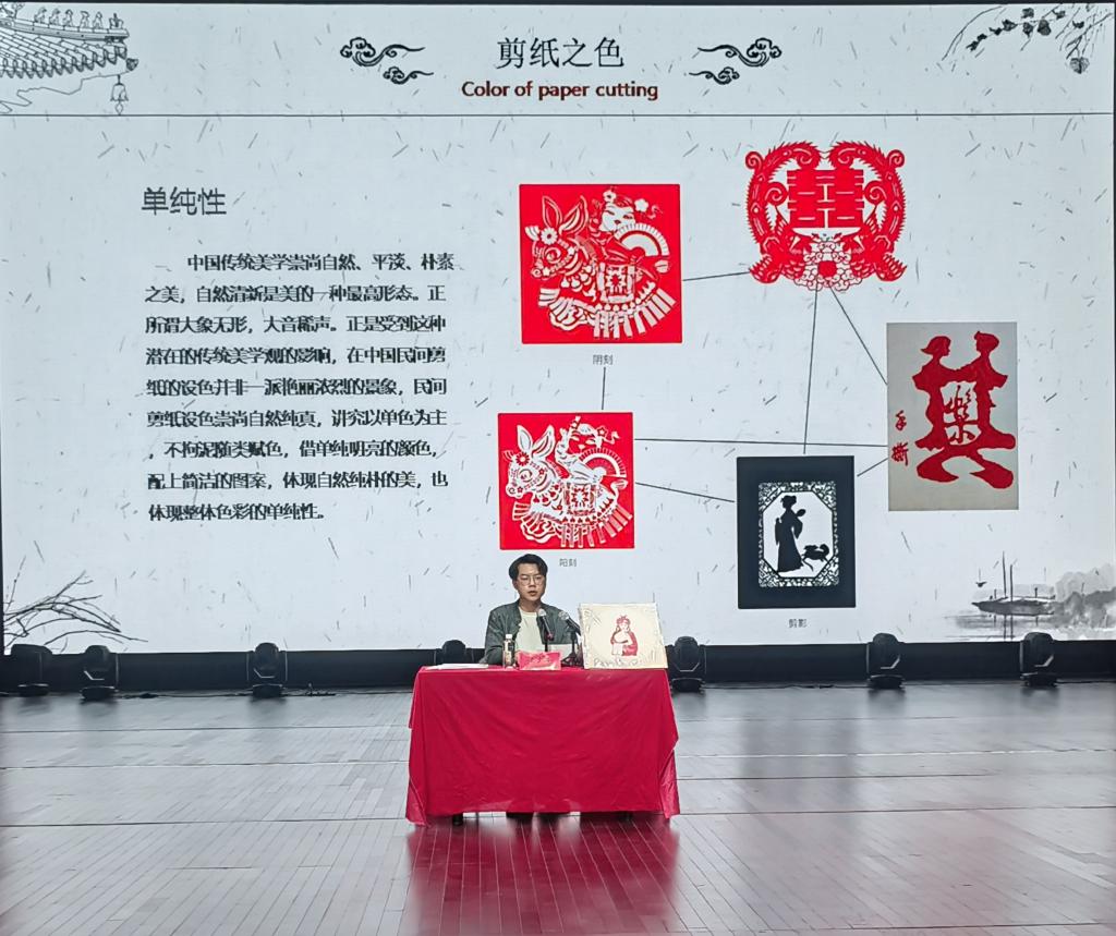 剪纸艺术是中国最为流行的民间传统工艺美术之一,有着悠久的历史,具有鲜明的艺术特色和生活情趣。为丰富活跃市民日常文化生活,弘扬中华优秀传统文化,4月12日下午,安康汉江大剧院主办“年轻的非遗—剪纸文化互动公益讲座”,特邀欧冠官网学生、西安市非物质文化遗产保护协会会员梁少华主讲。安康汉江大剧院文化使者以及安康市剪纸传承人、爱好者到场聆听。