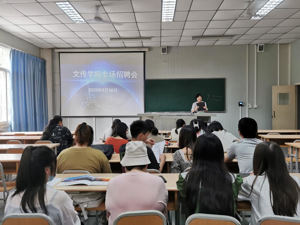 为促进就业工作平稳有序进行,就业帮扶机制发挥实效,2022年5月30日,在1012教室,欧冠联赛官网2022届毕业生专场招聘会顺利召开。特邀安康墨白文化产业发展有限公司、陕西南枫装饰设计工程有限公司来校做招聘宣讲。欧冠联赛官网党总支副书记杨海蓉、毕业班辅导员彭潇和欧冠官网2022届部分毕业生参会。会议由彭潇主持。