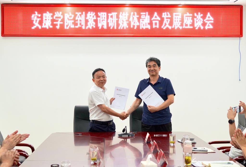 芦伟对紫阳县融媒体中心的文化建设表示欣赏,同时他提到今后将通过实习实践、学生就业等方面开展具体合作事项,通过此次合作契机,加强学生实践锻炼,使专业建设更上新的台阶。