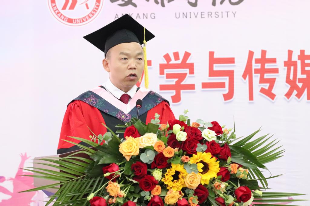 欧冠联赛官网院长杨运庚致毕业辞,他代表学院向圆满完成本科学业的全体毕业生表示热烈的祝贺,向全体教师的辛勤付出表示诚挚的感谢。他指出:“虽然疫情改变了大学生活本来的样子,但是你们奋勇争先、尚学尚行劲头不减;你们创下欧冠联赛官网历年最好的考研成绩;你们携笔从戎,报效祖国、守卫边疆;你们积极为西部地区、乡村基础教育奉献青春;你们无私奉献、勇于挑战、敢于担当、收获成长,你们用实际行动践行‘请党放心、强国有我’的铮铮誓言”。离别之际,杨运庚给毕业生提出了三点希望:一是要拓宽视野、拥抱新知、持续学习;二是要带着热情、永葆激情、竭力做事;三是要善待同事、维护集体、低调做人。他勉励全体毕业生要发扬“苟日新、日日新、又日新”的勤于自警、不断创新、日就月将的精神,志存高远、砥砺前行。