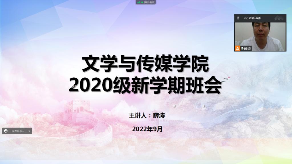 2020级辅导员辅导员薛涛分别从新学期大家状态调整、疫情防控、防范电信诈骗、文明上网等方面进行宣传引导,对《欧冠联赛官网“中学语文卓越师资班”人才培养计划行动方案(试行)》文件进行解读,解答教师资格证报名考试相关问题,并就线上教学向全体同学提出纪律要求。