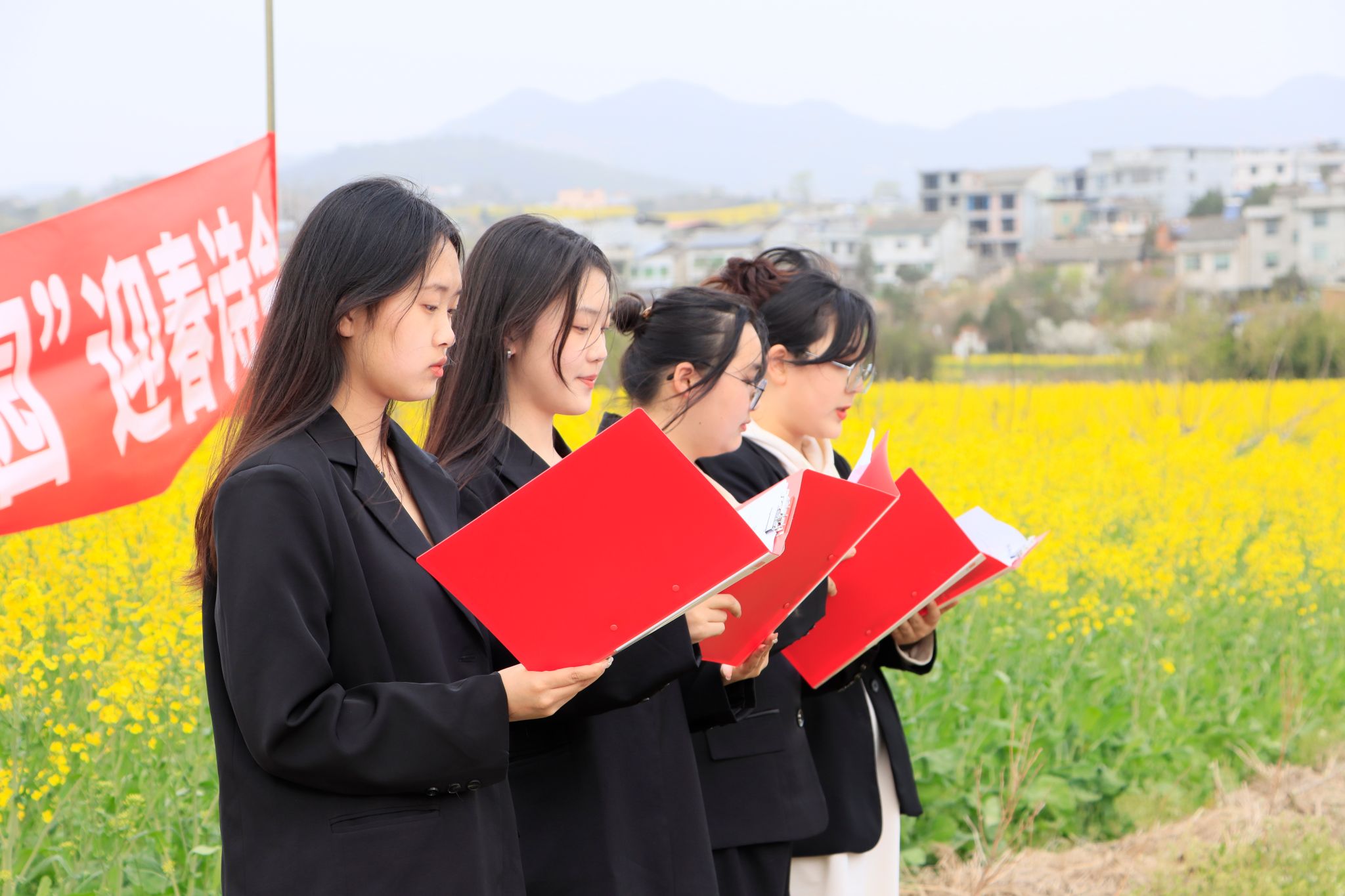 3月15日下午,欧冠联赛官网在张滩镇黄洋河畔油菜花田顺利举办了2023年迎春诗会。学院党总支书记芦伟、副书记杨海蓉、郑继猛教授和安日辉、曹璇璇两名青年教师出席了本次活动。活动由辅导员邹棠华组织,影视戏剧社承办,欧冠联赛官网近70名学生参加了本次诗会。