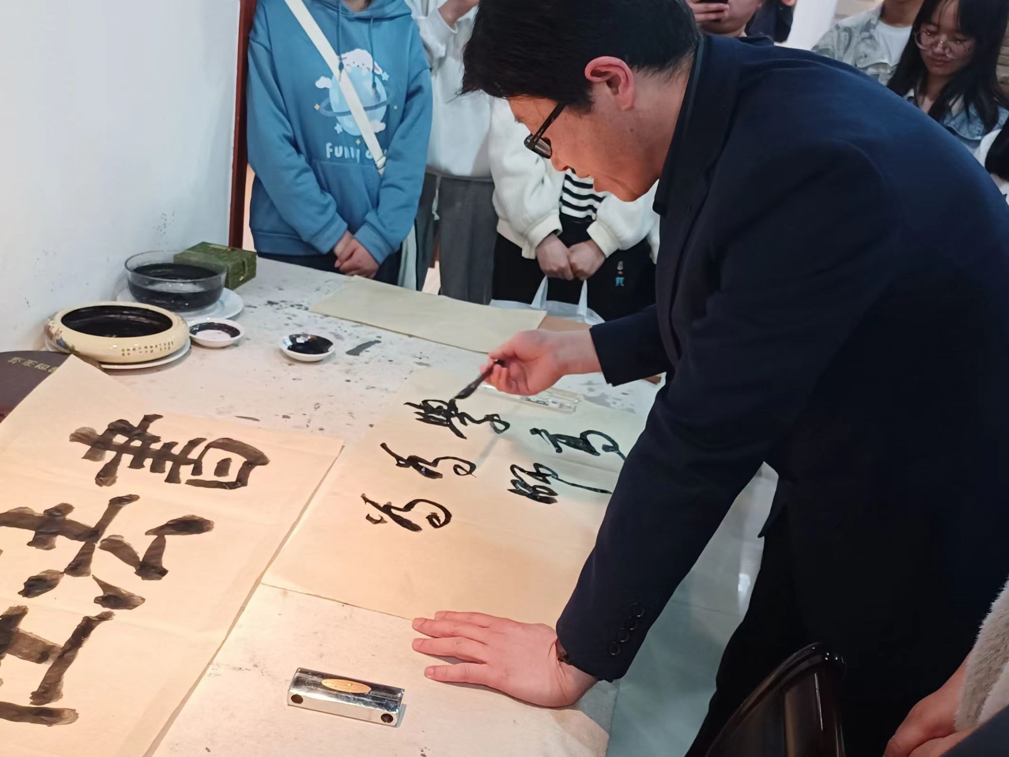 活动中,芦伟向宦咏梅颁发聘书,聘请其担任书法社的兼职指导老师。