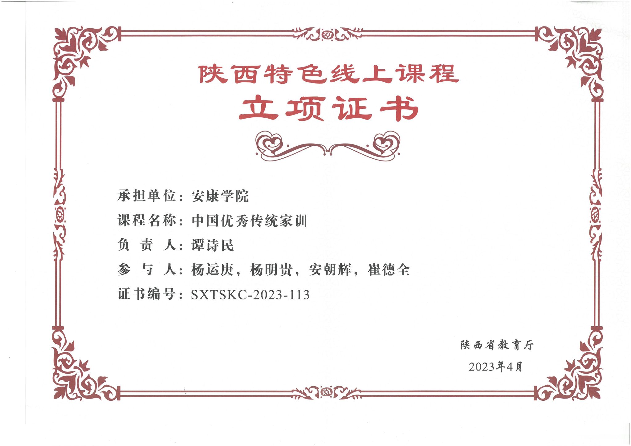 4月20日,陕西省委教育工委、省教育厅组织召开了陕西数字教育大会。大会以“数字化赋能教育高质量发展”为主题,包括主会场及基础教育、职业教育和高等教育等3个分会场活动。高等教育分会场活动中发布了陕西特色线上课程立项建设名单,并向教师代表颁发了立项证书。欧冠官网谭诗民博士主持申报的《中国优秀传统家训》课程获陕西特色线上课程立项建设,并参会领取了立项证书。