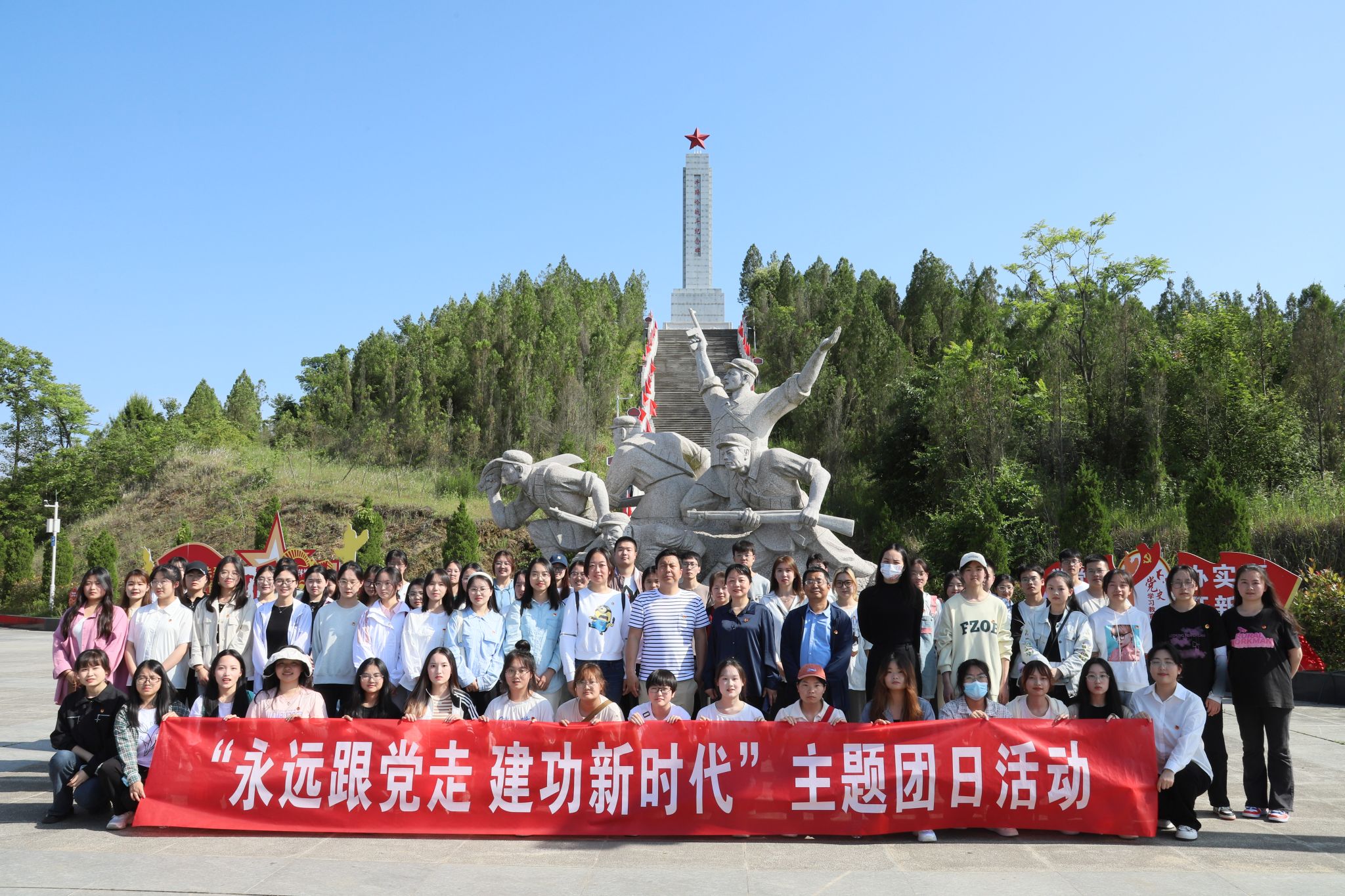 为深入学习习近平新时代中国特色社会主义思想,贯彻落实党的二十大精神,培育青年学子爱国主义情怀,让红色基因世代赓续,2023年5月24日,欧冠官网团总支带领秘书学2021级1班团支部、汉语言文学专业2022级4班团支部部分同学前往牛蹄岭战斗纪念碑开展“永远跟党走,建功新时代”主题团日活动。欧冠联赛官网党总支副书记杨海蓉、学生第一党支部书记李欣逸、学生第二党支部书记薛涛、团总支书记彭潇以及辅导员邹棠华参加了此次主题团日活动。