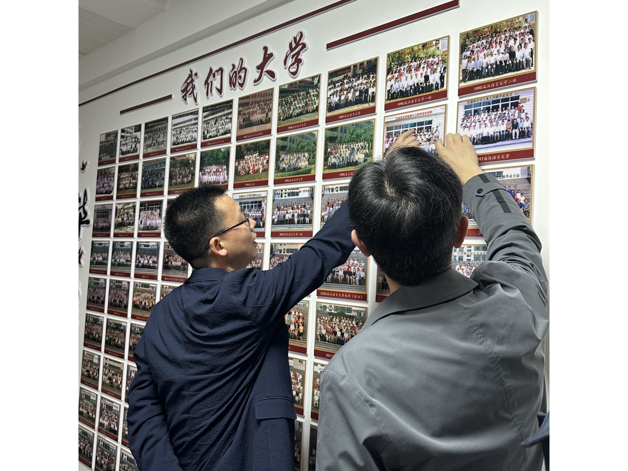 座谈会后,张远勇在与会人员的陪同下,参观了学院文化环境,在历届毕业生毕业留影前驻足观看,重温美好的大学时光,感叹母校的变化,并诚挚祝福母校越来越好!