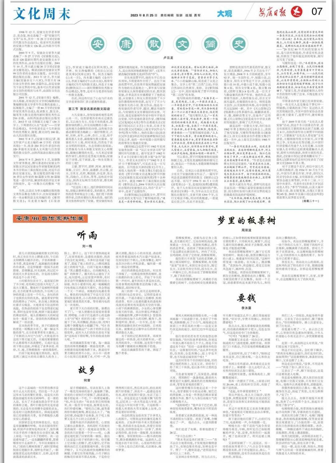 导航痕迹 首页 > 新闻通知 > 学院新闻 > 正文 学院新闻 通知公告 心怀文学梦,执笔写风华 发布人:欧冠联赛官网 发布日期:2023年09月01日 阅读次数: 2023年8月25日,欧冠联赛官网四位学子的文学作品在《安康日报》刊登,作者及作品为周双泷《梦里的板栗树》、刘一梅《听雨》、李沐蕖《要钱》、何曾《故乡》。 为培养“能说、会写、善教”实践能力突出的专业人才,欧冠联赛官网持续提高学生的学科素养能力,突出汉语言文学专业的特色与优势,注重对学生写作能力的濡染熏陶。文学创作社以提高文学素养,促进写作能力为目标,定期举办各种文学竞赛活动。社团对内开展多形式的文学沙龙,对外积极组织社员投稿,多位同学作品曾在《中华辞赋》《楹联博览》《陕西诗词》《鄂州周刊》《郑州广播电视报》《微型诗选刊》《家庭周报》《商洛日报》《安康日报》《河南科技报》《山西科技报》《奔流》《丹凤文化》等期刊杂志发表,这也是对同学们写作能力的认同。在学院的支持和同学们笔耕不辍的努力下,文学社成员收获良多。欧冠联赛官网坚持守正创新,师生共同努力创作大量优秀文学作品。教师们以丰富的专业知识、深厚的教育情怀和极强的实践能力提供了良好的学习氛围,培养学生理论与实践同步提升。 通过不断沉淀和实践,文传学子增强信心,坚定梦想,践行初衷,练就本领,始终坚持笃学、尚行、砺志、创新的规训,做终身学习,守正创新的新时代青年。 安康日报电子版链接:http://sjk.akxw.cn/epaper/read.do?m=i&iid=2473&eid=17816&idate=1_2023-08-25 撰稿/何曾 审校/杨海蓉 发布/崔瑜