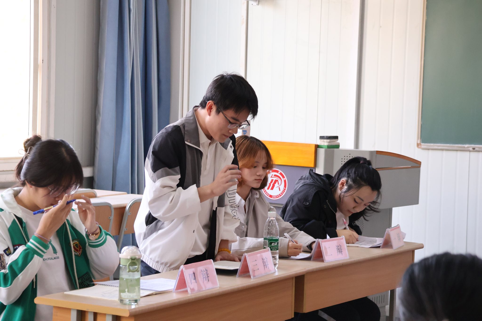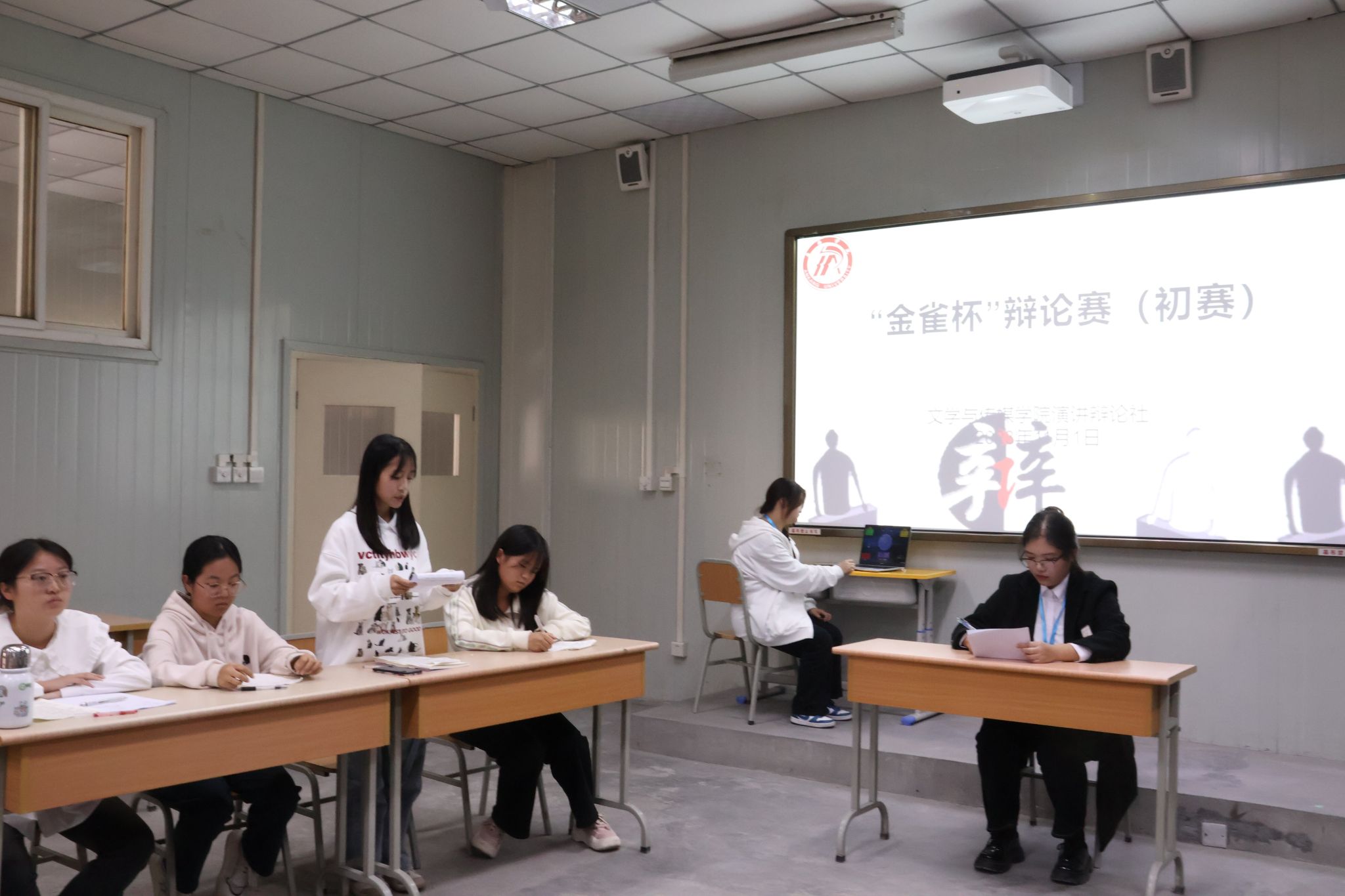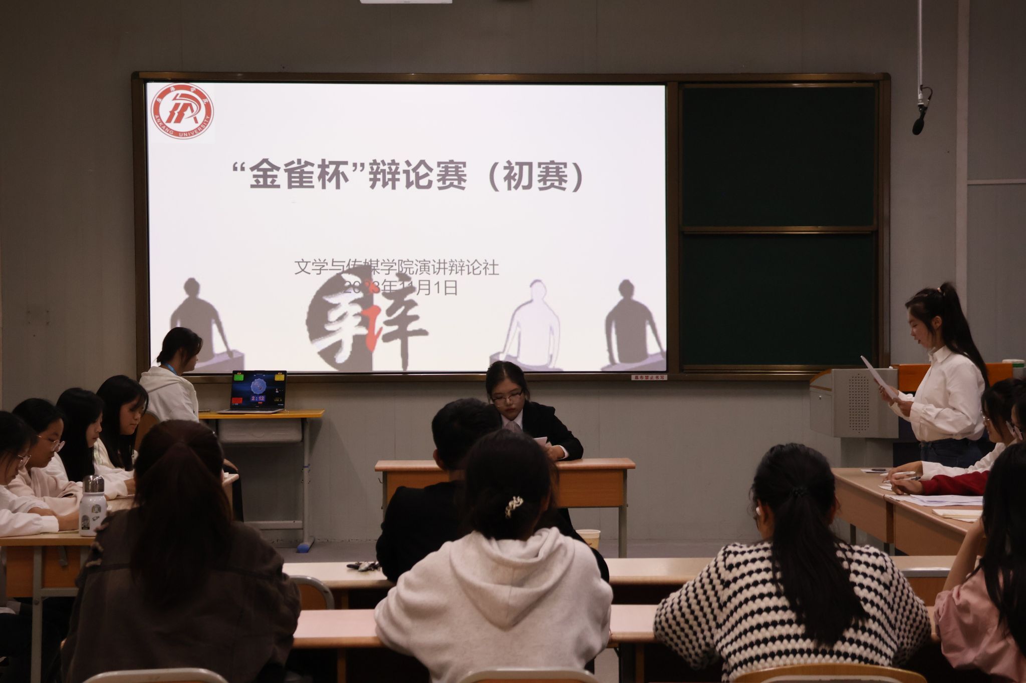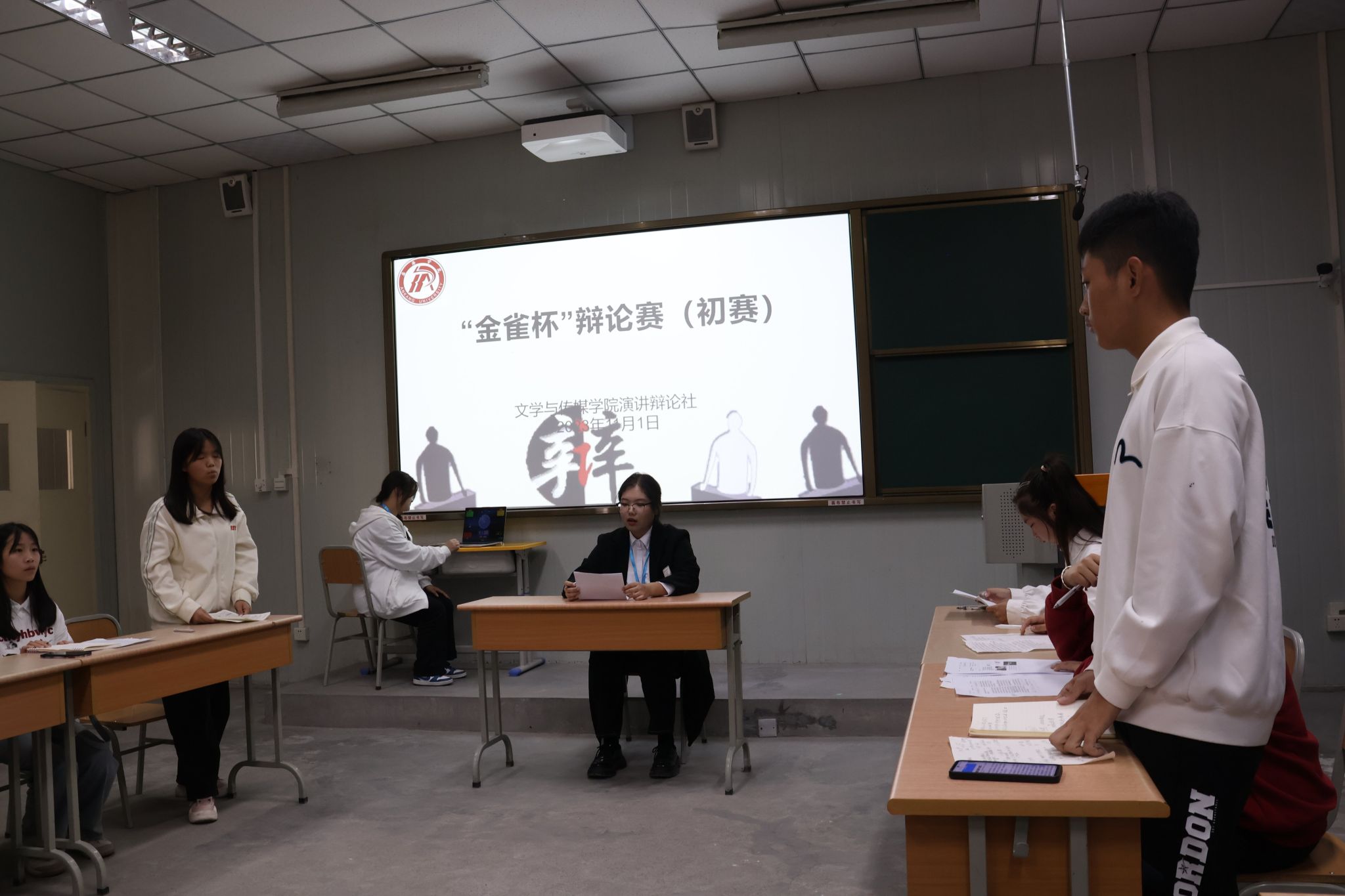 为培养学生思维能力和语言表达能力,向欧冠联赛官网第十四届“金雀杯”大学生辩论赛筛选后备人才,展现新时代青年面对热题时勇于探求、深入思索的精神风貌,2023年11月1日下午,文传学院在1026、1027、1028教室举办了第十四届“金雀杯”辩论赛院系初赛。欧冠官网党总支副书记杨海蓉,演讲辩论社指导老师余珊、团总支书记彭潇、新生辅导员许明与欧冠官网部分学生参与此次活动。