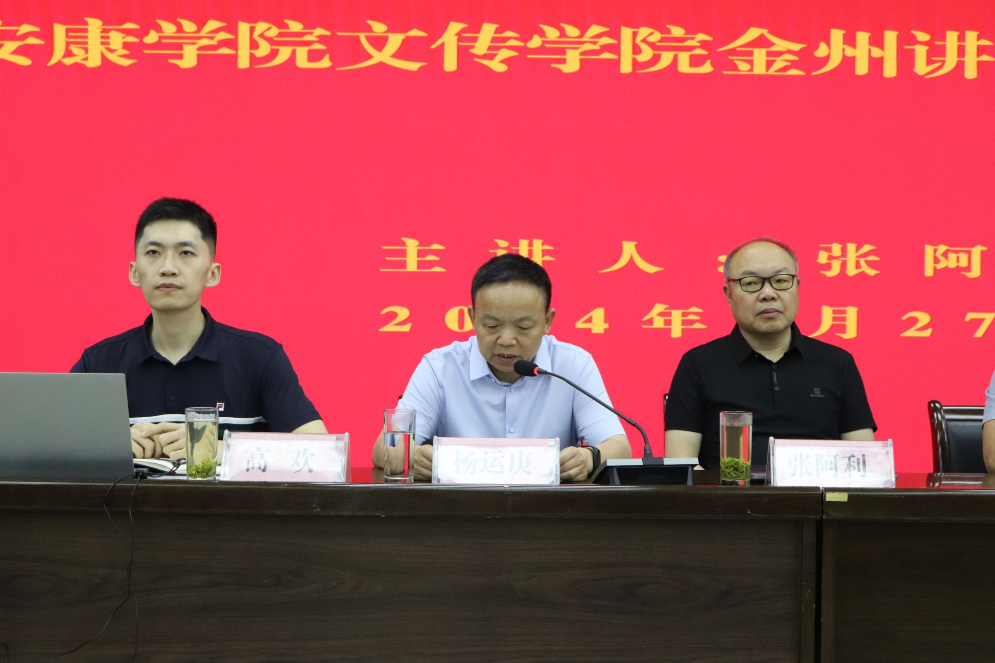 6月27日上午,陕西省文艺评论家协会文艺“六进”志愿服务活动暨我校欧冠联赛官网“金州讲堂”第四十二讲在江南校区图书馆六楼报告厅举行,陕西省文艺评论家协会主席、西北大学电影学院院长张阿利应邀作了“西部电影四十年”的学术报告。省文艺评论家协会秘书长杨钊、欧冠联赛官网院长杨运庚出席活动并致辞,活动由欧冠联赛官网副院长、安康市文艺评论家协会主席朱云主持。