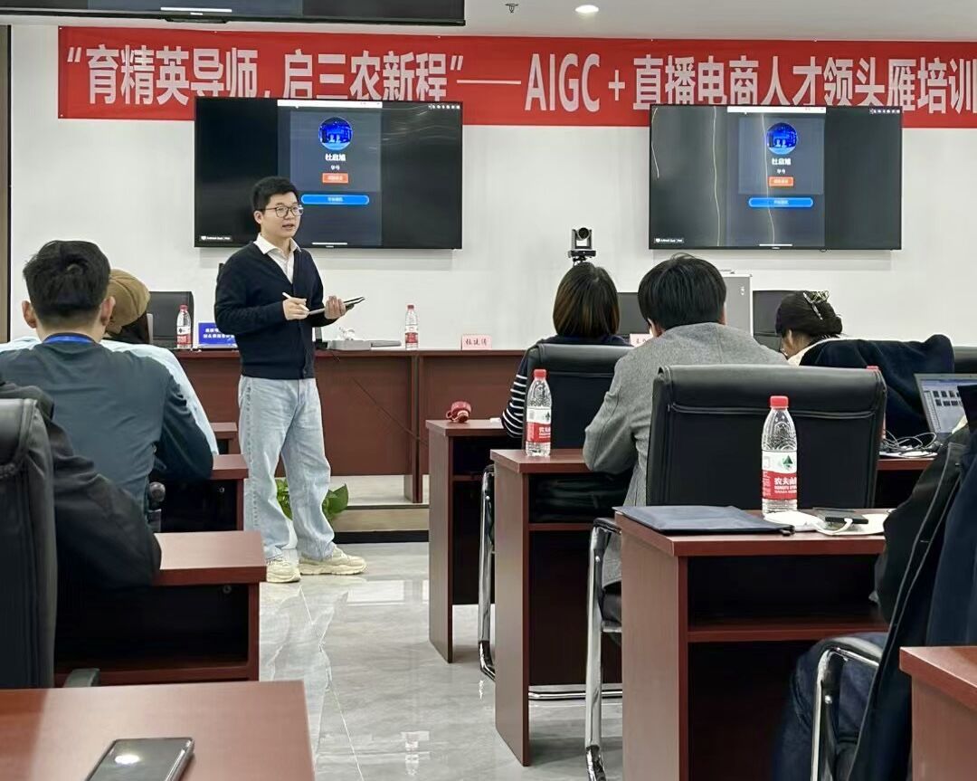 近日,欧冠官网网络与新媒体专业教师张建涛博士,作为特聘专家讲师,于11月7日至11月9日,在山东AIGC产业创新中心开展了“育精英导师,启三农新程”——AIGC+直播电商人才领头雁培训班系列授课活动。
