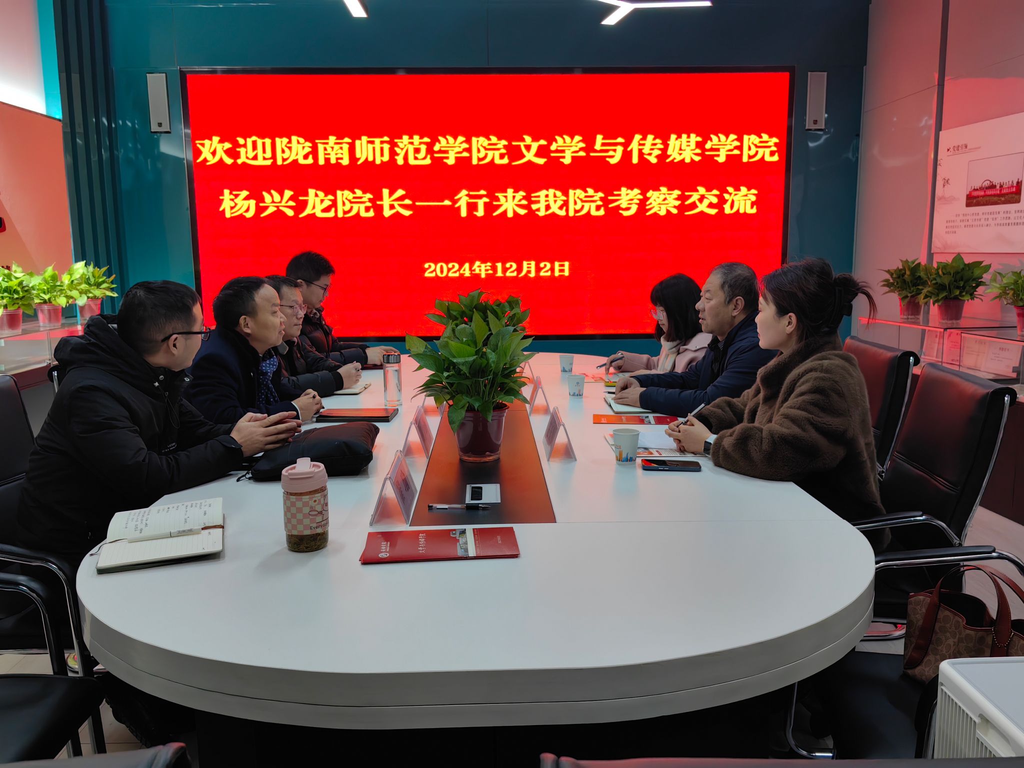 12月2日上午,陇南师范学院欧冠联赛官网杨兴龙院长一行3人来欧冠官网考察交流,欧冠联赛官网院长杨运庚、副院长朱云、秘书学专业负责人胡少山、秘书与新媒体系主任张建涛、党政办主任崔瑜参加交流座谈。