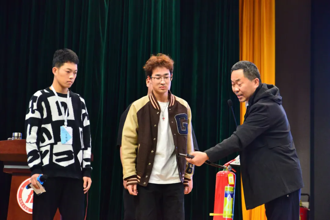王开忠以反邪教视频开篇,强调了开展安全教育课程的重要性。随后,他以“什么是安全?”导入讲座,现场师生互动气氛活跃。王开忠由浅入深,围绕网络安全、电信诈骗、防火防爆和交际安全等问题展开,通过生动的案例让同学们对安全的重要性有了清晰的认识。王开忠还现场为同学们演示了灭火器的正确使用方法,他希望新一批大学生能够牢记安全意识,提高自身安全防范能力。在互动问答环节,同学们热情高涨,反响热烈。