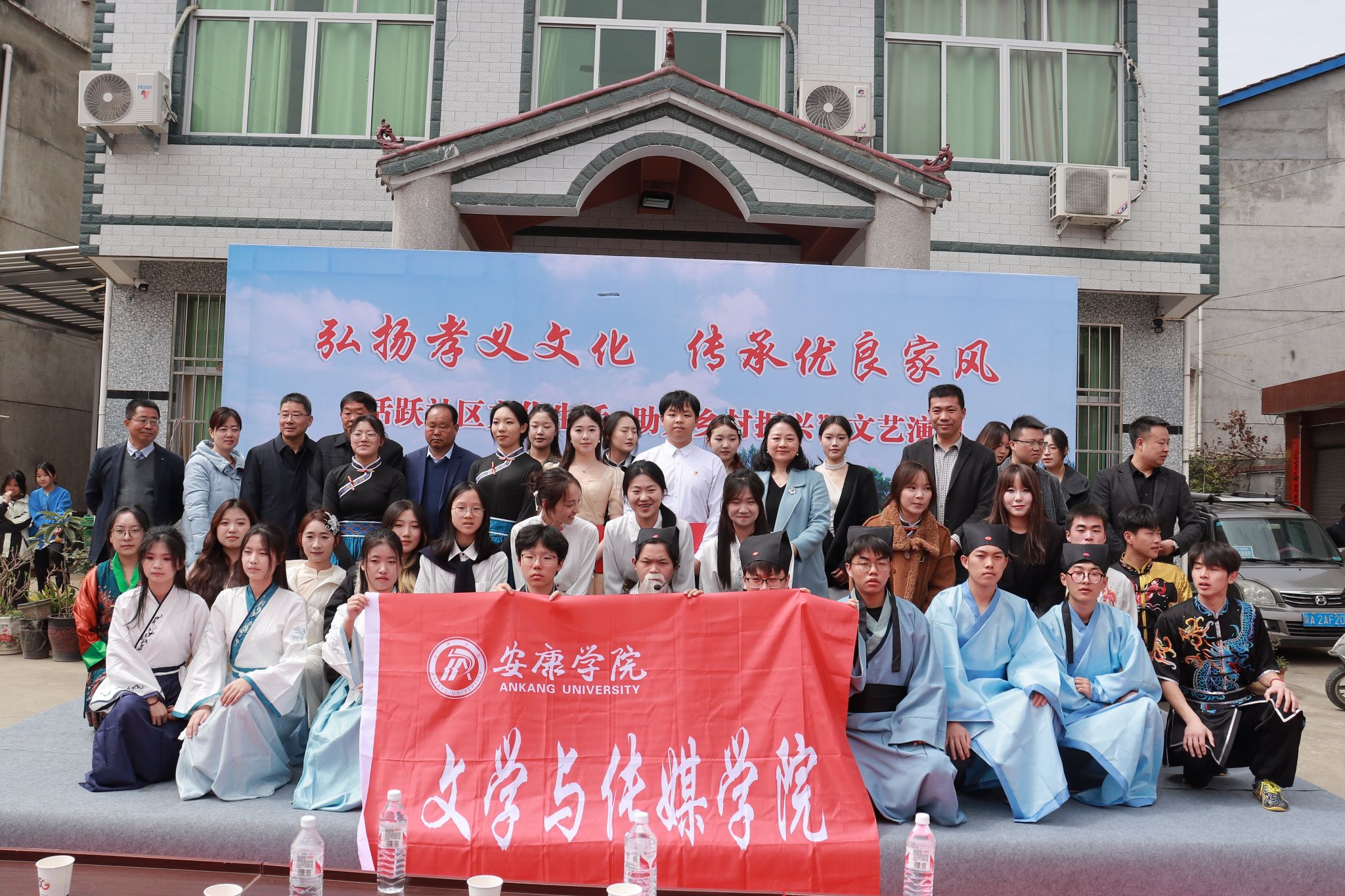 为弘扬孝义文化,培育优良家风,赋能乡村振兴,2025年3月30日,欧冠官网师生赴汉阴县双乳镇开展以“弘扬孝义文化,助力乡村振兴”为主题的送文化下乡活动。本次活动由学院辅导员邹棠华老师策划并执导,院党总支副书记杨海蓉、学工办主任薛涛带队,联合体育学院、化学与环境学院、外语学院、教育学院40余名同学,为当地群众献上了一台文化盛宴。本次演出活动得到了汉阴县文联,县家训文化传承研究学会,双乳镇党委、人民政府,双乳镇社区的支持以及汉阴邹氏家训文化传承研究学会的鼎力协助。汉阴县文联主席李轶、县家训文化传承研究学会会长沈继正、双乳镇党委委员程鹏,双乳社区党支部书记高志才以及当地群众三百余人观看了演出。