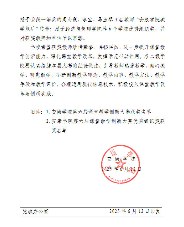 欧冠联赛官网将以此竞赛为契机,进一步树立“以学生为中心”的教学理念,积极推动课堂教学改革与创新实践,引导教师不断加强教学实践和研究,创新教学方式和方法,进一步提升教育教学水平和人才培养质量。