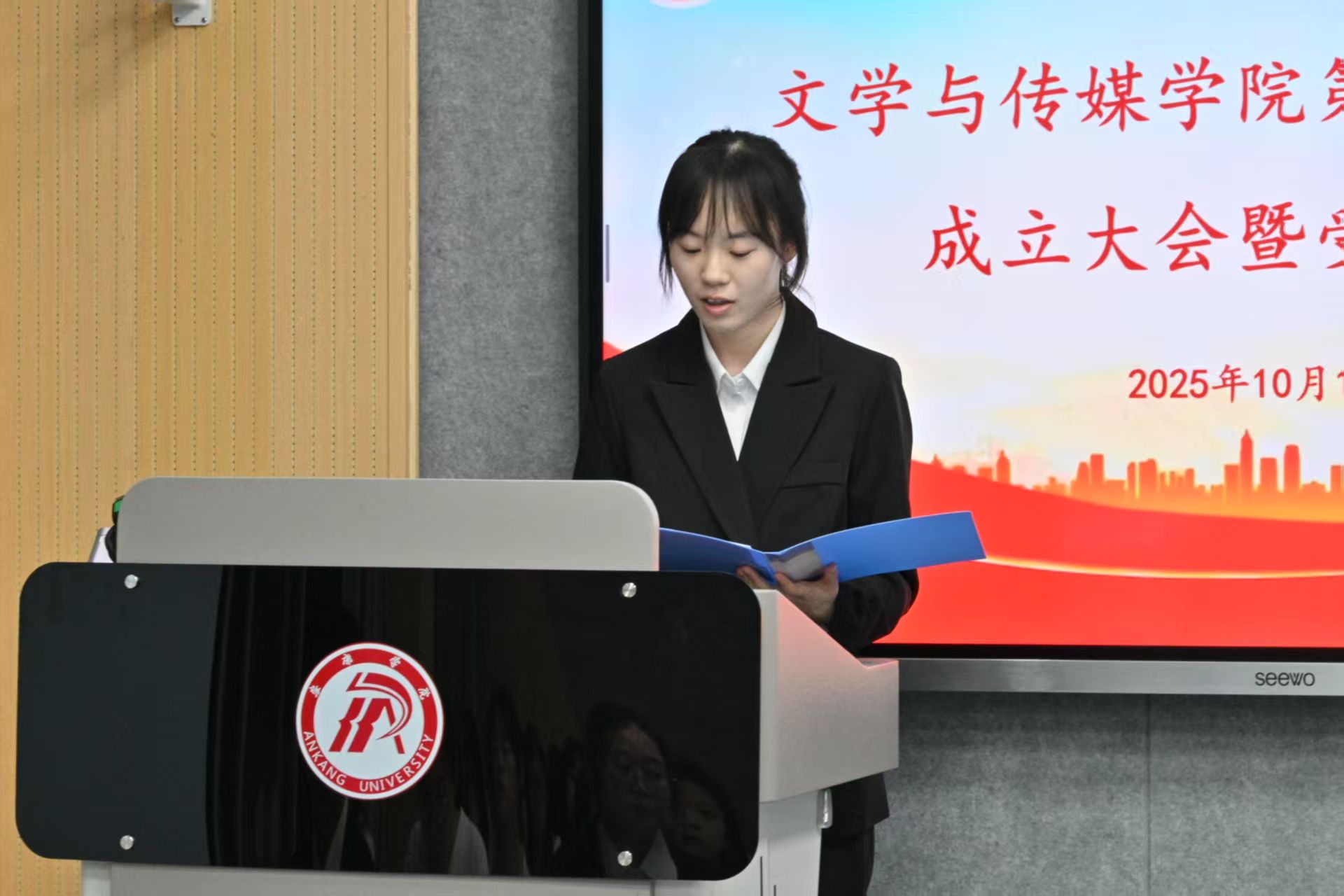 彭潇对上一届成员做出的贡献表示肯定和感谢,并热烈欢迎新成员。她鼓励同学们不断加强理论学习和业务钻研,提升新闻敏锐度与写作水平,讲好文传故事,继续保持发现美好的眼光,用青春的笔触书写属于这个时代的奋斗篇章。