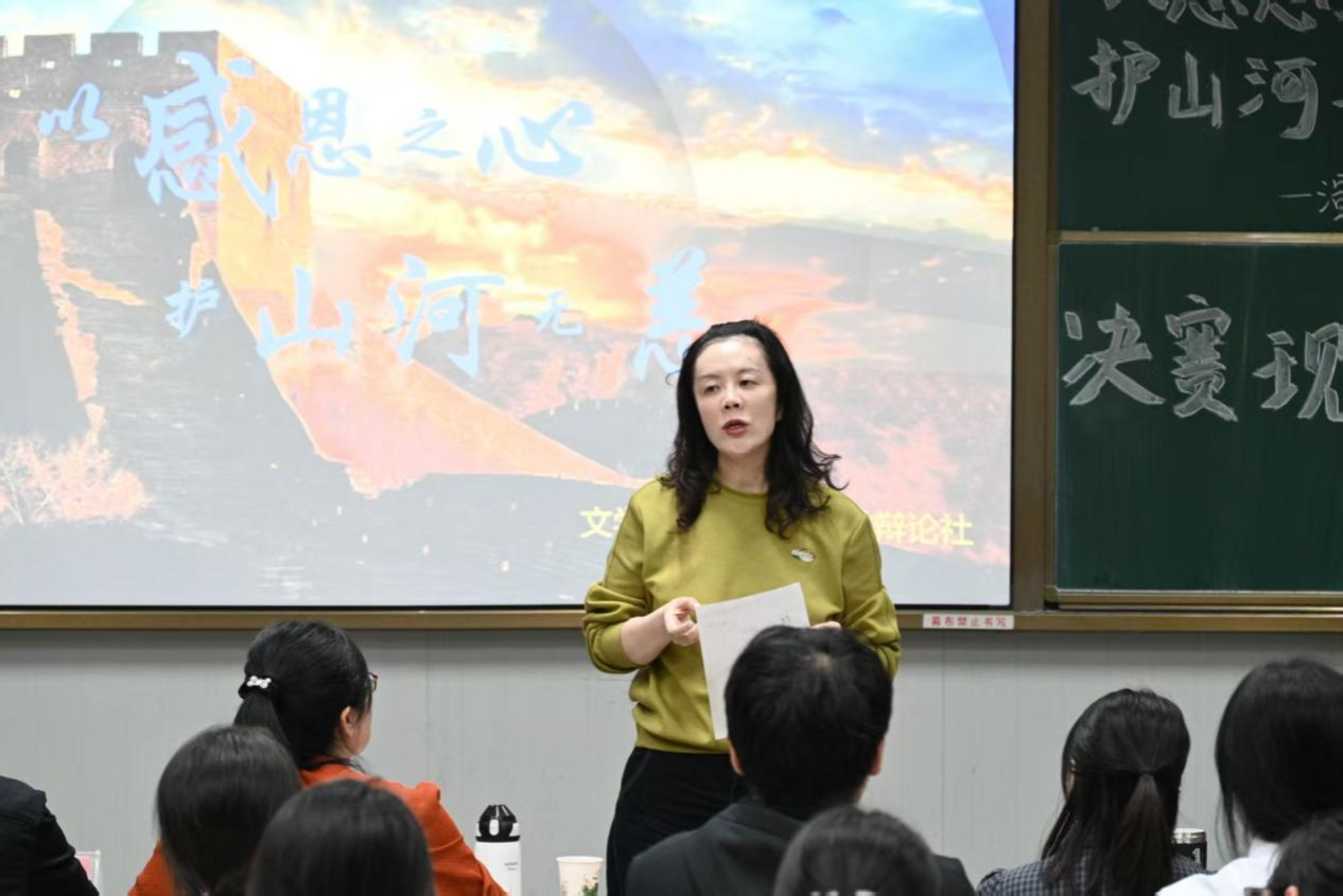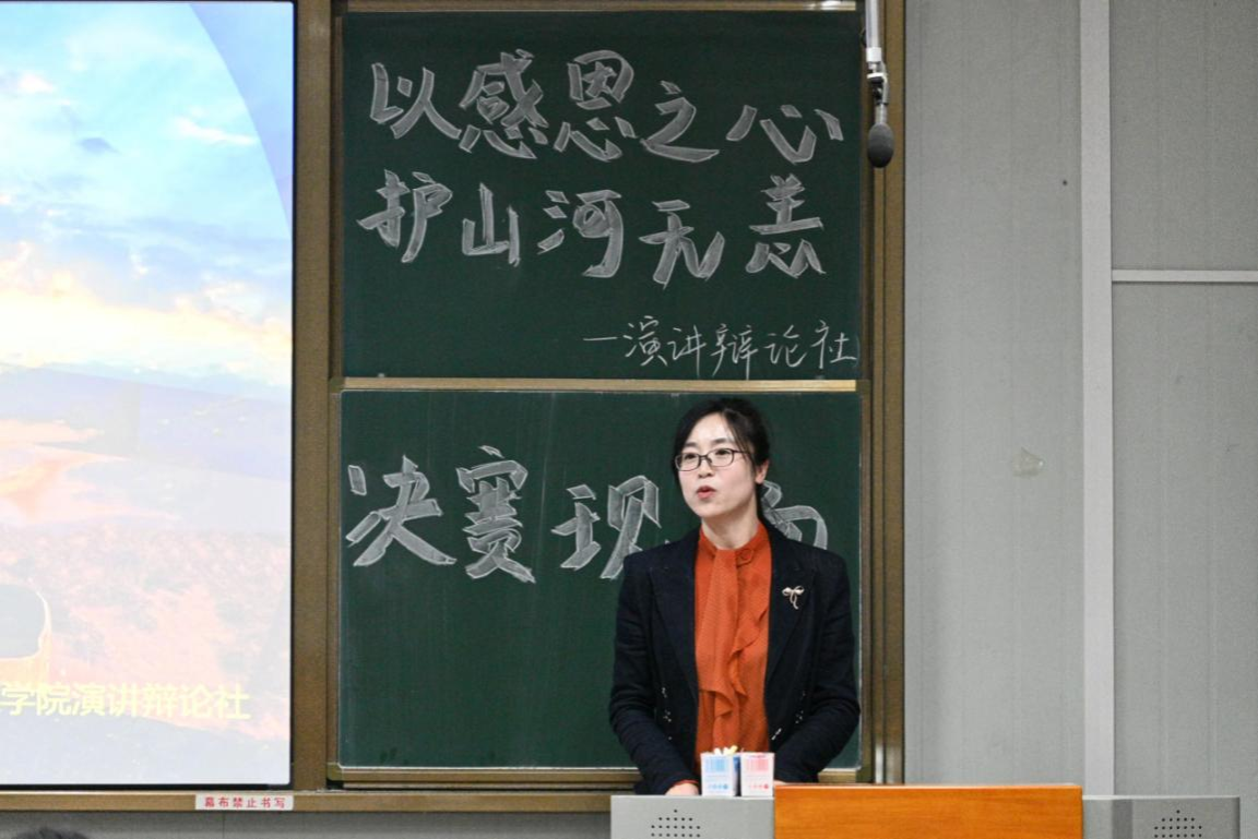 侯红艳副书记在致辞中对演讲辩论社举办的此次活动给予高度评价,并对社团规模的不断扩大表示祝贺。她勉励同学们在比赛中充分展示个人才华,用真挚的演讲传递感恩之情与家国情怀,在感恩中汲取力量,同时预祝本次演讲比赛得圆满成功。