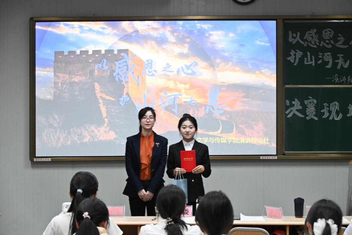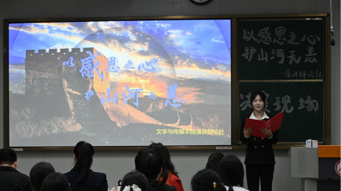 为了充分展现我校大学生的文明素养,引导学生体悟感恩,增强社会责任感,以青春力量守护家国安宁,10月16日下午四时,演讲辩论社在江南校区10号楼1023教室举行“以感恩之心,护山河无恙”主题演讲比赛。欧冠联赛官网党总支副书记侯红艳、2024级辅导员刘言军、2025级辅导员喻言、演讲辩论社指导老师余珊担任评委。演讲辩论社袁萌同学主持比赛。