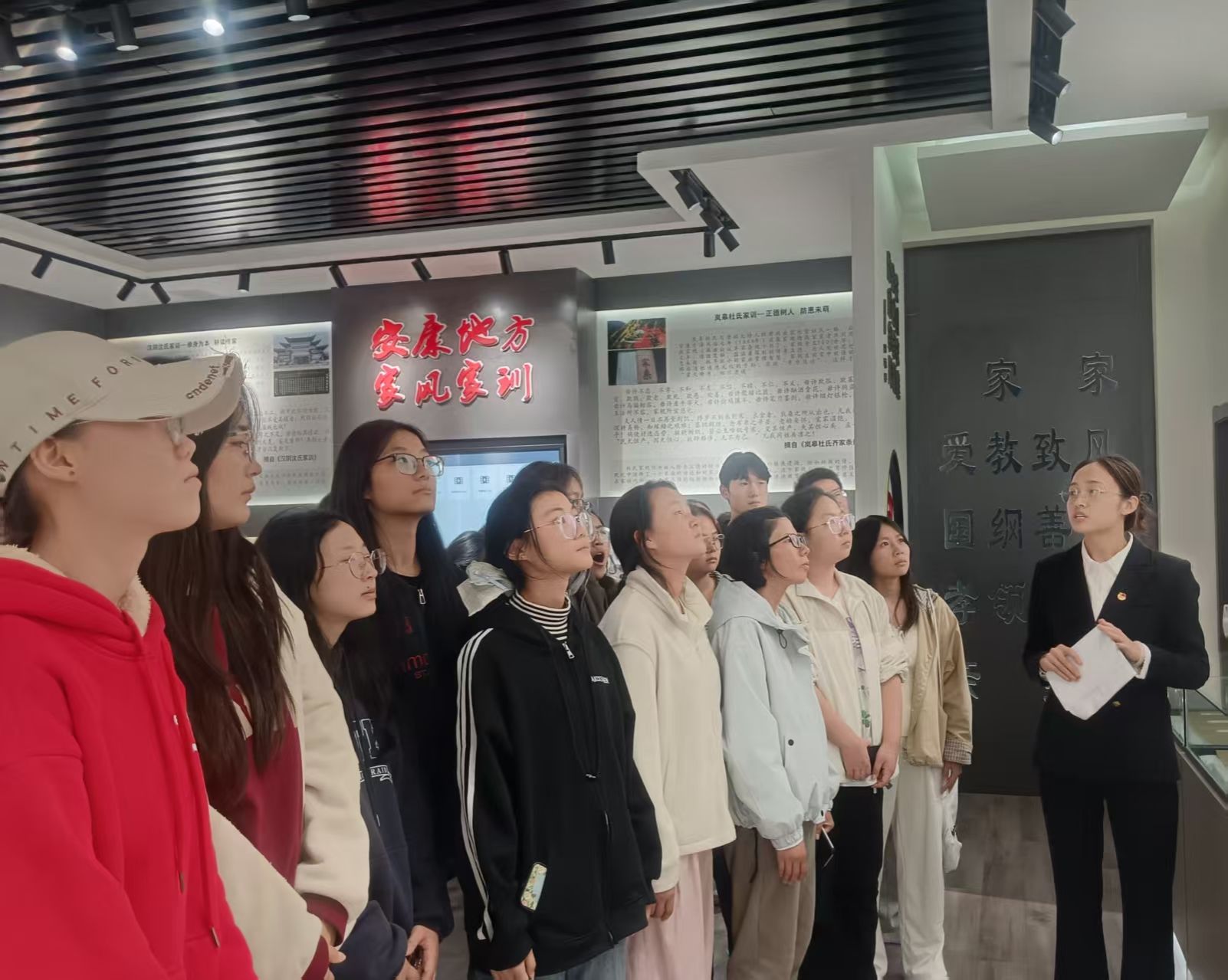 走进家风馆,讲解员围绕古今优良家风的传承脉络娓娓道来。一幅幅生动的图文、一段段深刻的家训,让同学们在驻足沉思中感悟“家风如镜,映照个性修养”的深刻内涵。同学们表示,将以优良家风为行为标杆,让良好家风沉淀于心、彰显于行。