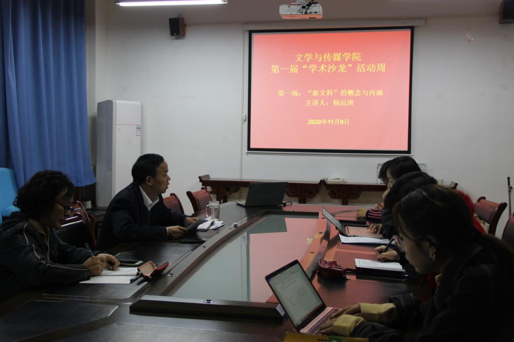 11月9日晚7时,欧冠联赛官网第一届第一场“学术沙龙”活动在2307会议室举行。本次活动的主讲人是欧冠联赛官网院长杨运庚教授,主题为“‘新文科’的概念与内涵”,欧冠联赛官网语言学科组全体教师参与了此次活动。