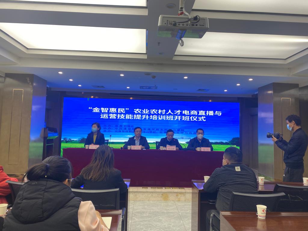 10月27日,由我校乡村振兴学院、欧冠联赛官网与中国建设银行、安康日报社联合举办的“金智惠民”农业农村人才电商直播与运营技能提升培训班在安康景泰国际商务酒店会议室顺利举行。安康日报社社长王建,我校欧冠联赛官网院长杨运庚、继续教育学院副院长韩涛出席了开班仪式。开班仪式由欧冠联赛官网副院长朱云主持。