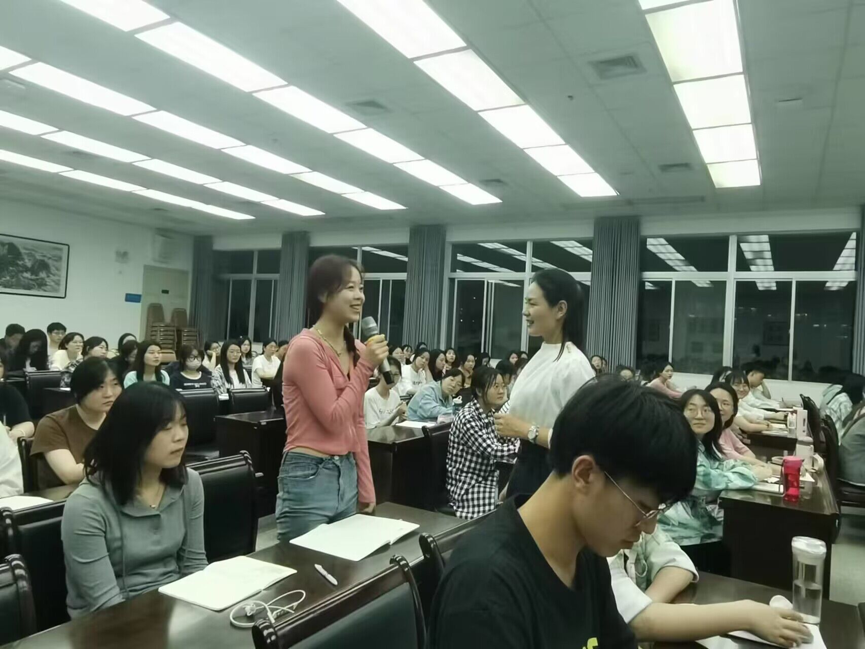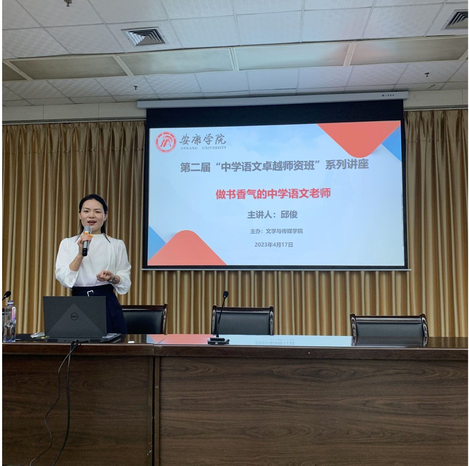 邱俊老师从“读书•悦己”“教书•悦己”“写书•越己”三个层次阐述了如何成为一个有书香气的中学语文老师,她告诫同学们在读书中要悦纳平凡的自己,悦纳艰难的自己,悦纳不完美的自己,在读书中找寻自己的归属,找到属于自己的那份光,同时在未来教学中要努力用书香气去濡染一代代学生。讲座交流环节,同学们踊跃发言,在交流中深刻认识到多读书、读好书对成为一名优秀中学语文老师的重要性。