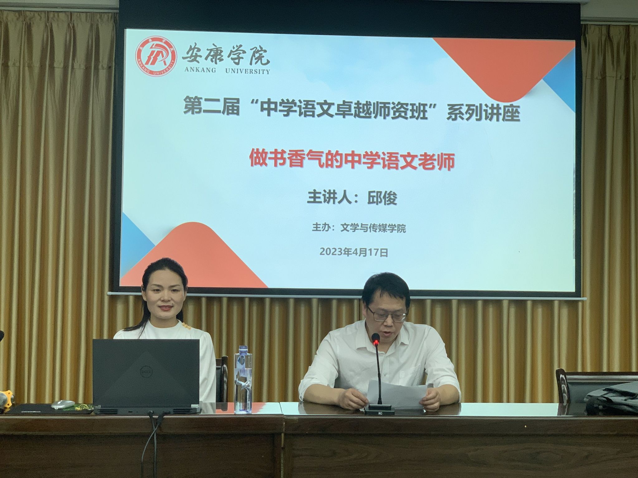 2023年4月17日下午七点半,陕西省教学名师、安康市教研室专家邱俊老师应邀为欧冠官网第二届“中学语文卓越师资班”系列讲座做了题为“做书香气的中学语文老师”的首场讲座。讲座由欧冠联赛官网副院长朱云主持,班主任张格瑄和“中学语文卓越师资班”的135名同学聆听了本场讲座。