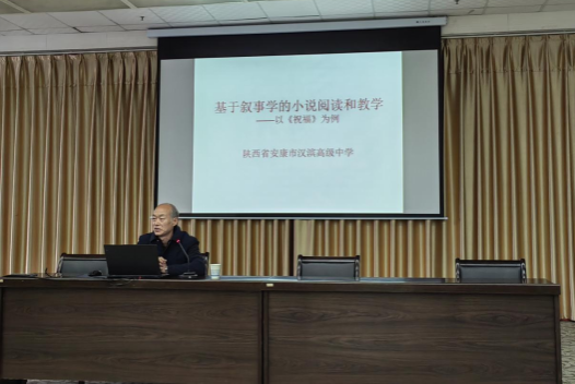 2023年11月15日下午2点半,欧冠联赛官网邀请汉滨高级中学、省级学科带头人和教学能手程时进老师为欧冠官网第三届“中学语文卓越师资班”师生做了题为《基于叙事学的小说阅读和教学——以<祝福>为例》的精彩讲座。讲座由卓越师资班班主任唐明珍主持,“中学语文卓越师资班”全体学生聆听了本场讲座。