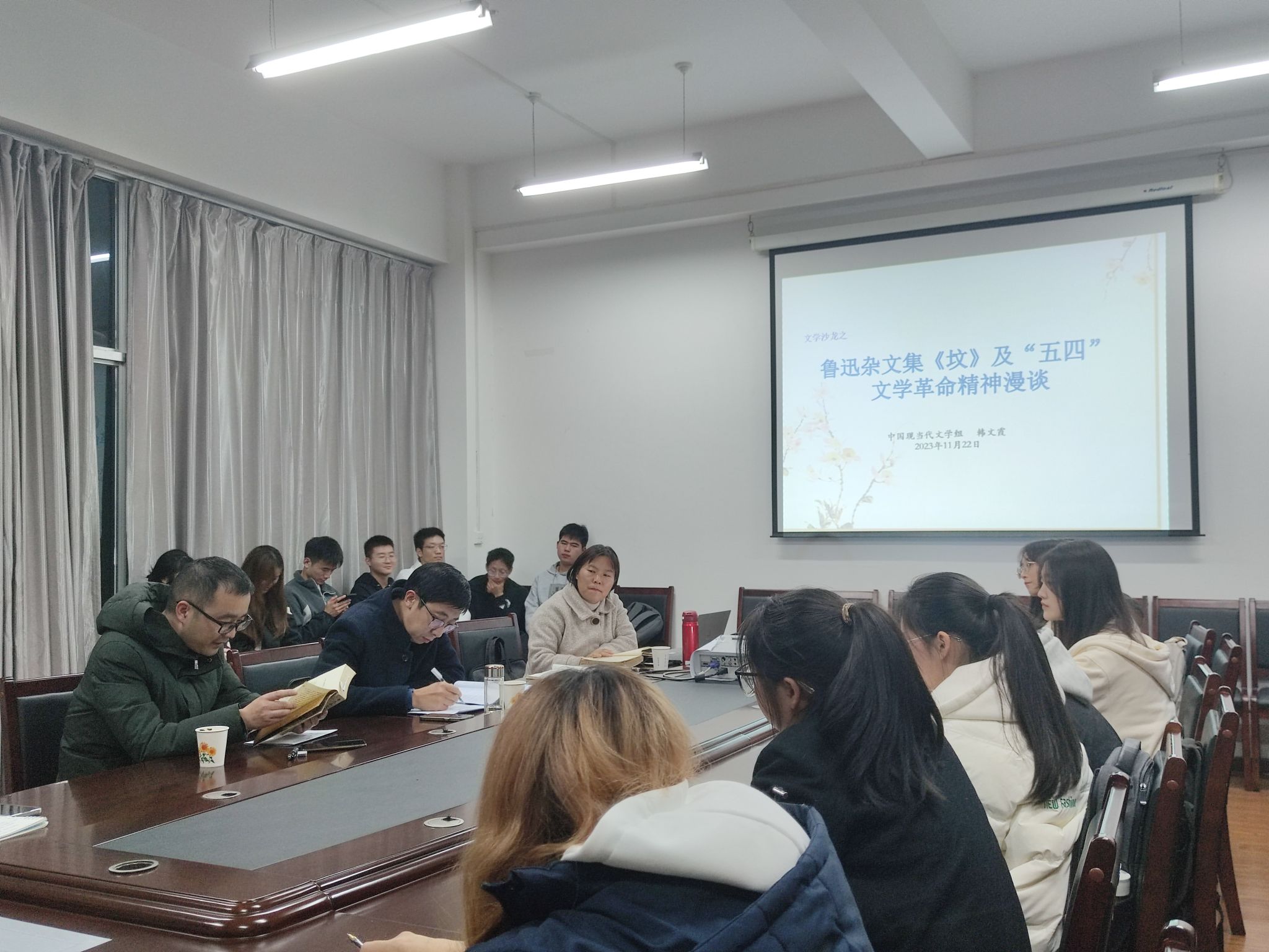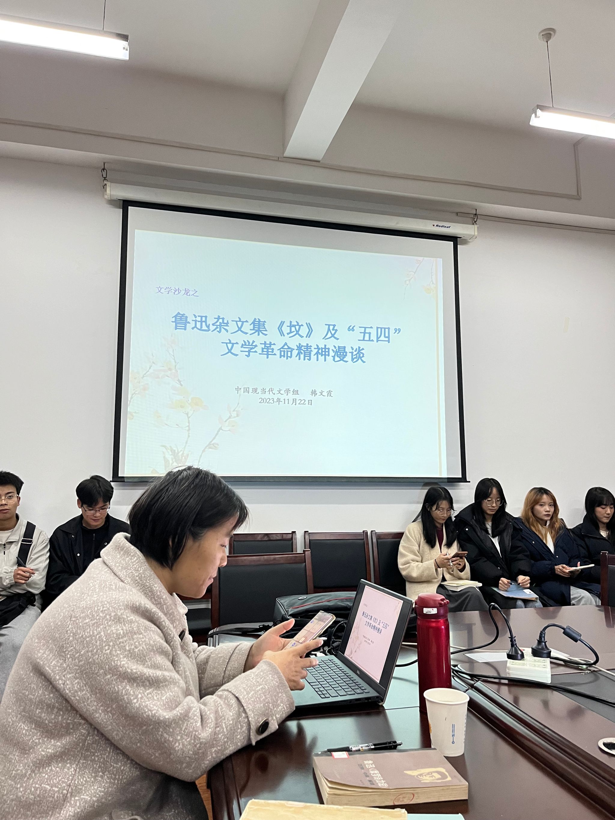 11月22日晚7点10分,欧冠联赛官网中国现当代文学学科组在陕南民间文化研究中心会议室成功举办了第八届“学术沙龙”活动周第二场沙龙。本场学术沙龙由韩文霞主讲,主题为“鲁迅杂文集《坟》及‘五四’文学革命精神漫谈”。欧冠联赛官网副院长曹刚、专任教师胡少山和二十余名学生参与了沙龙活动,沙龙由曹刚主持。