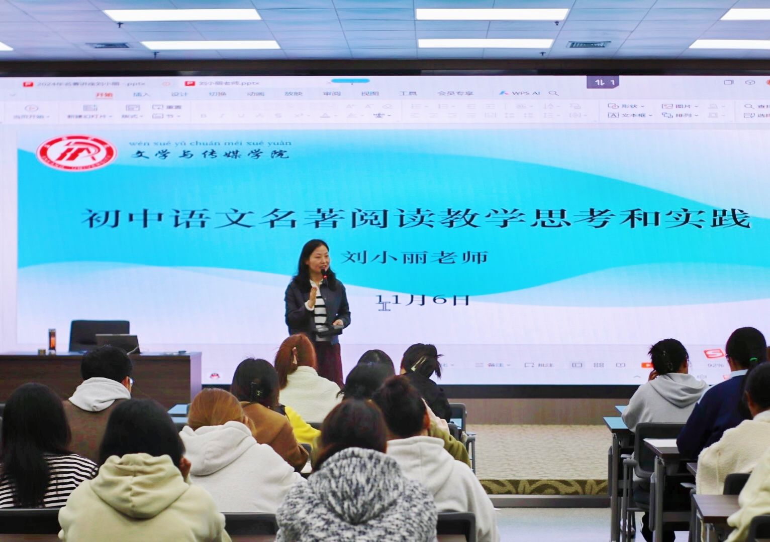 2024年11月6日,欧冠联赛官网第四届“中学语文卓越师资班”第二场学术活动成功举行,本次讲座特邀陕西省语文教学名师刘小丽开展了以“初中语文名著阅读教学思考和实践”的专题讲座活动,班主任唐明珍和师资班全体学生聆听了本场讲座。