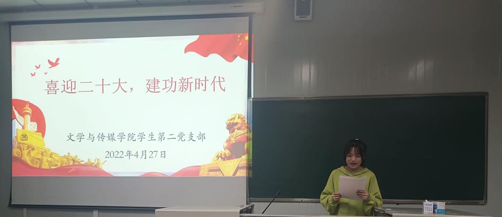 4月27日下午,欧冠联赛官网学生第二党支部开展“喜迎二十大 建功新时代”主题党日活动,支部全体党员、发展对象和积极分子参加了此次主题党日活动。本次主题党日活动由支部学生党员李一欣主持。