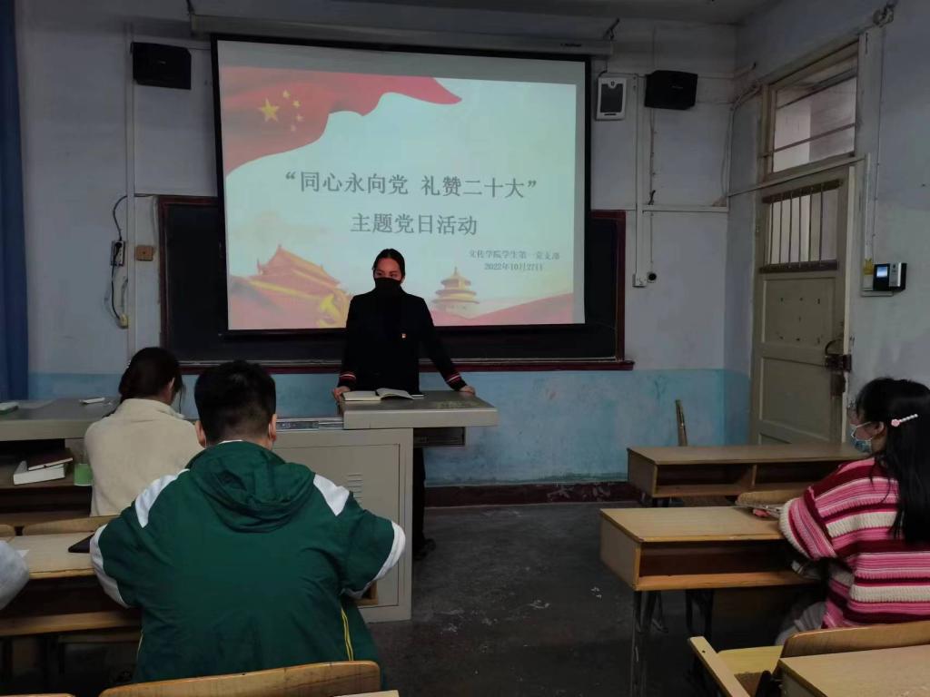 10月27日晚上7点30分,欧冠官网学生第一党支部召开了“同心永向党,礼赞二十大”主题党日活动。学生第一党支部书记李欣逸及学生第一党支部全体学生党员参加本次党日活动。
