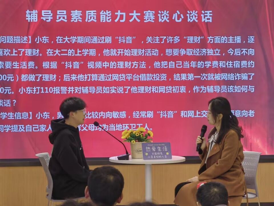 今年6月,学校启动辅导员素质能力大赛。通过精心策划,周密组织,淡化竞赛导向,倡导实绩实干,使本次大赛成为学工队伍展示工作案例、交流先进经验、讲述育人故事、传递价值认同的工作平台。