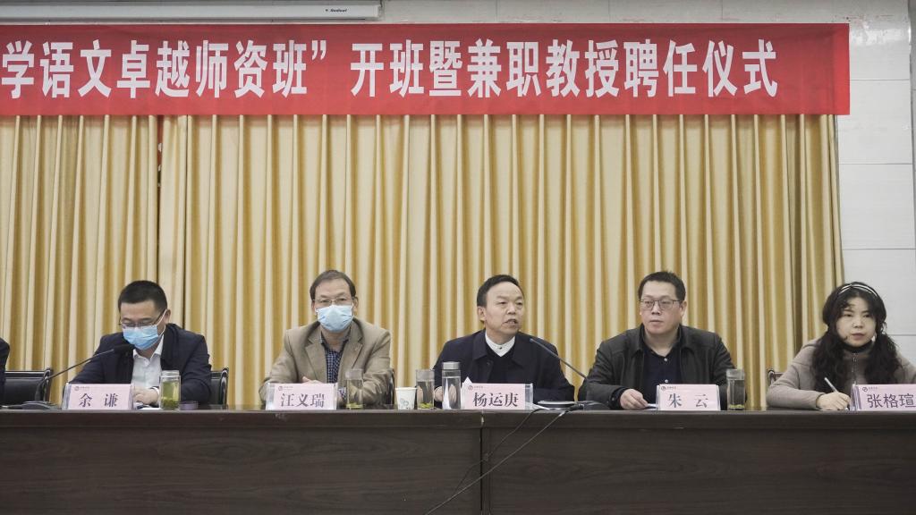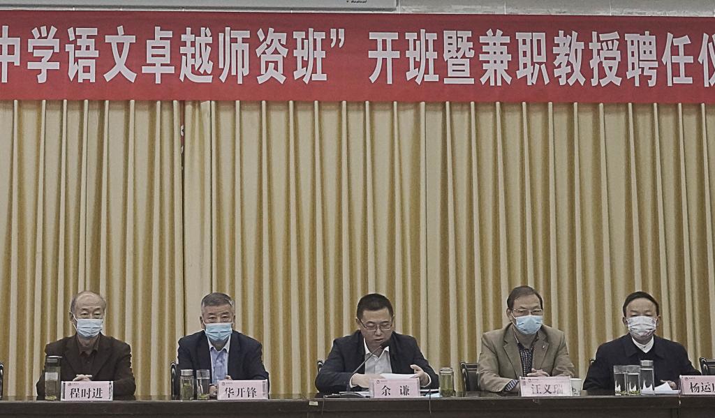 2022年11月4日下午,为持续优化汉语言文学专业的师范生培养质量,实现人才培养与行业发展的紧密对接,欧冠联赛官网第二届 “中学语文卓越师资班”开班暨兼职教授聘任仪式在图书馆六楼报告厅成功举行。副校长余谦、教务处处长汪义瑞、行业导师暨我校优秀校友华开锋和程时进、欧冠联赛官网领导班子成员及班主任出席了开班仪式。开班仪式由欧冠联赛官网副院长朱云主持,分会场1018和2315教室通过腾讯会议同步观看了全程内容。